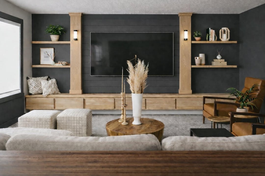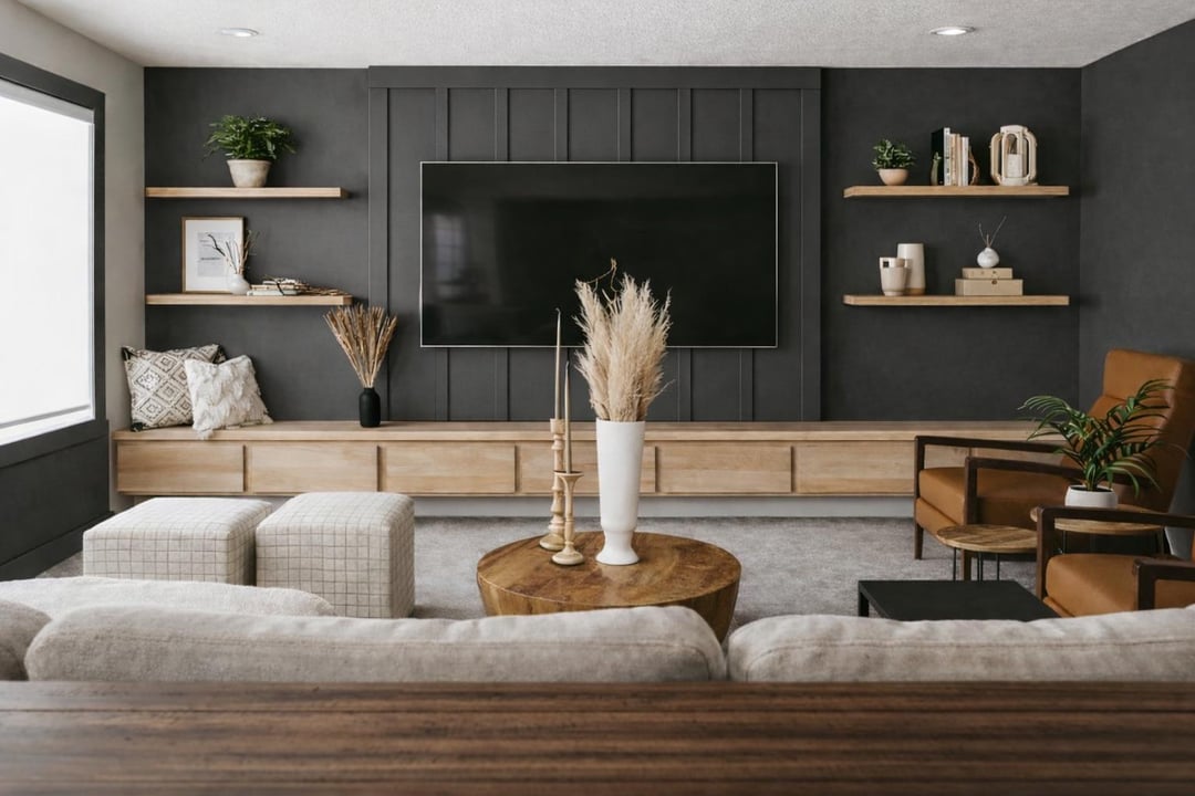 My initial thought was to go with the board and batten, but like others pointed out, I felt that the board and batten feature wall was almost too distracting to have behind a TV. I like the horizontal shiplap, but also felt that there were too many horizontal lines in the room already.