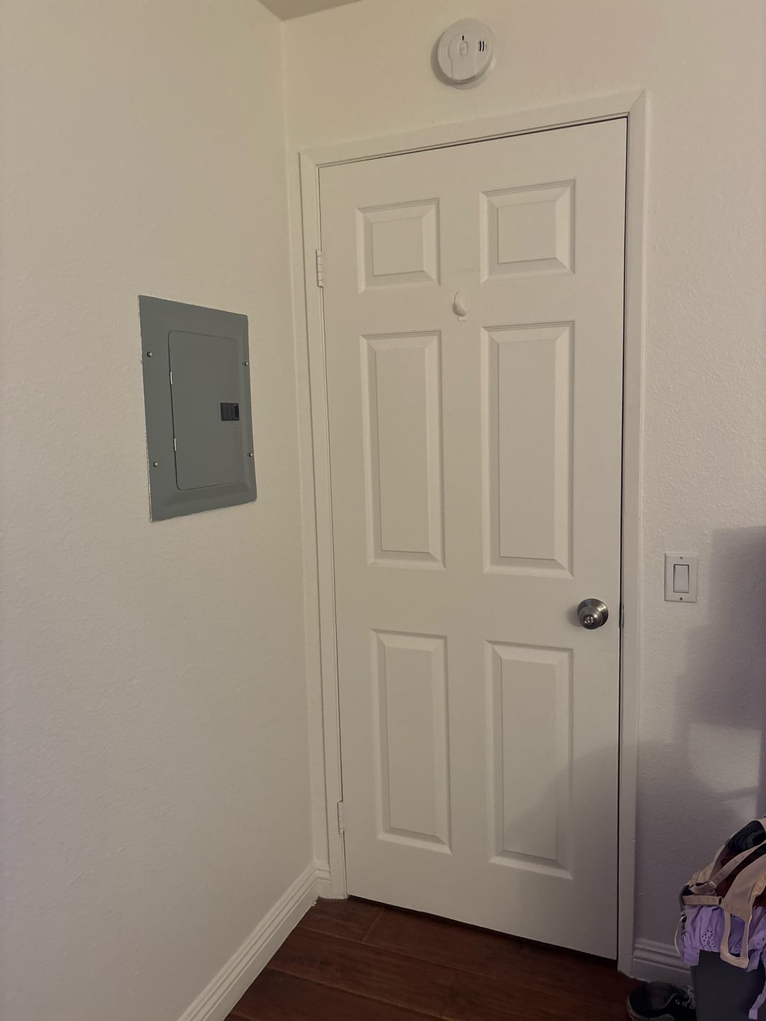 Hanging tapestry or something easy to move because your maintenance will need to get to that panel sometimes.