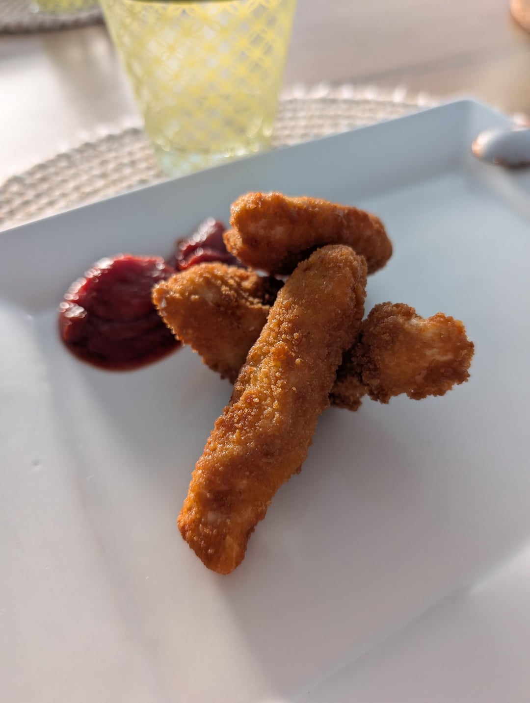 Et quoi de mieux que de bons nuggets de filet de poulet ? On a pas poussé le vice a accompagner de frites, nous nous sommes contentés de haricots, car, en dessert, il y a avait aussi une petite gourmandise.
