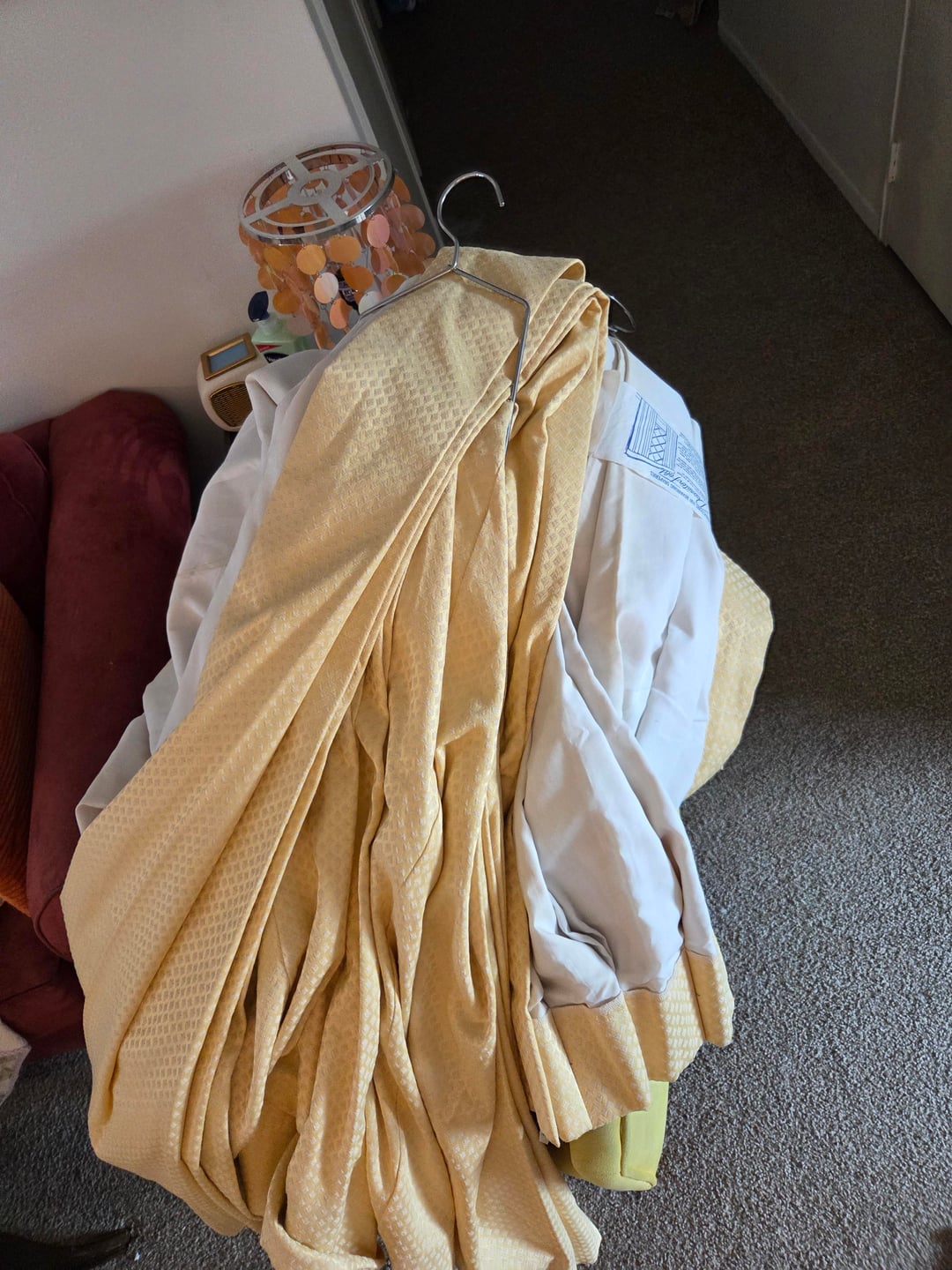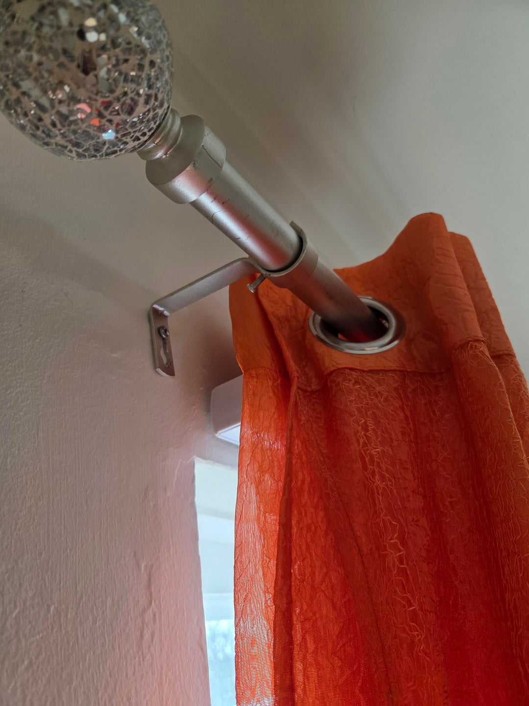 Also this is heaviest fabric I've ever held in my entire life. I guess I'll need to invest in heavy duty drape rods, because I don't believe my current rod will hold with two panels. Each panel is on a drape hanger. I now see that I didn't know what I was getting myself into lol