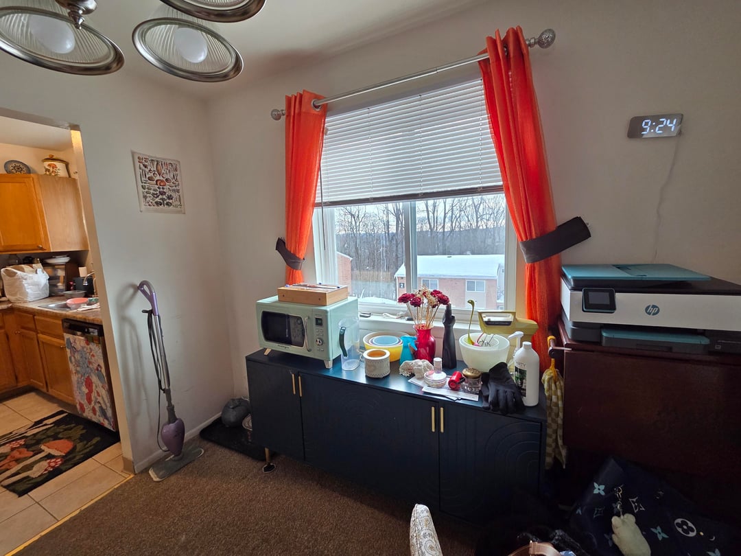 Sorry my breakfast nook is cluttered. I moved my small dining table to the living room to use as a desk for school work.
