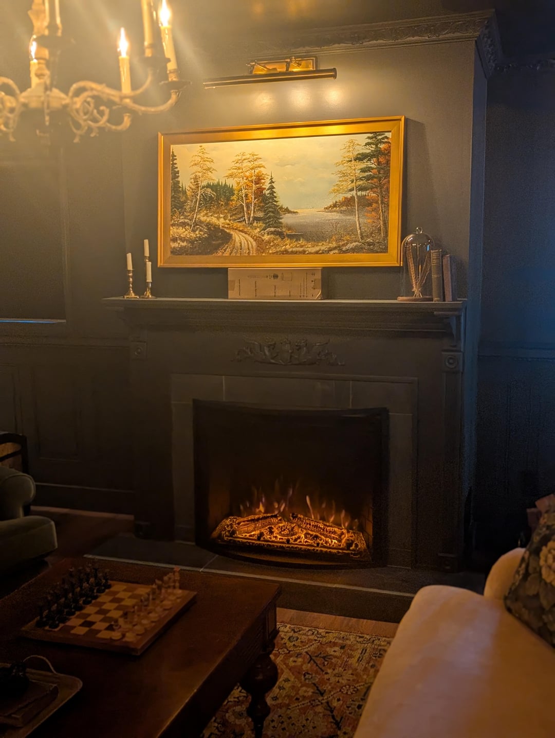 That height for the painting looks perfect. Now move the light down.