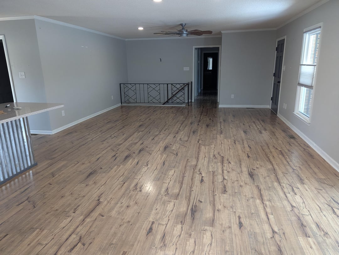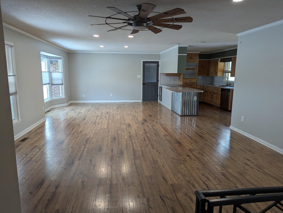 We want to paint, but are torn what color to choose. We thought about breaking it up, but we have no idea where the second color would start. It's already a light grey, which is fine, but we're thinking a muted blue or off white would be nice. Any suggestions!