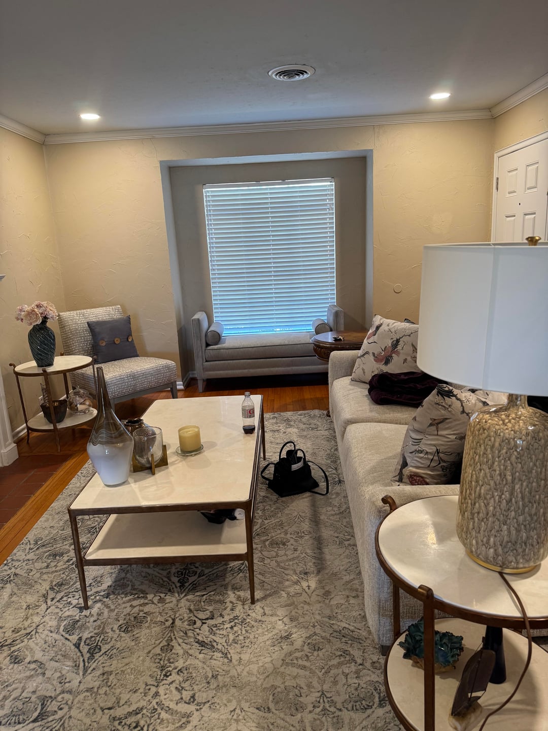 I figured it might not be good, yes I would like some help. Probably have too much in this very small room. And I can see now the table legs don’t match the chair legs. All of this but couch is new so not sure how much I can change…I actually had Ethan Allen designer come over and some pieces are from there so not happy with outcome. Tables are Serena and lilly.