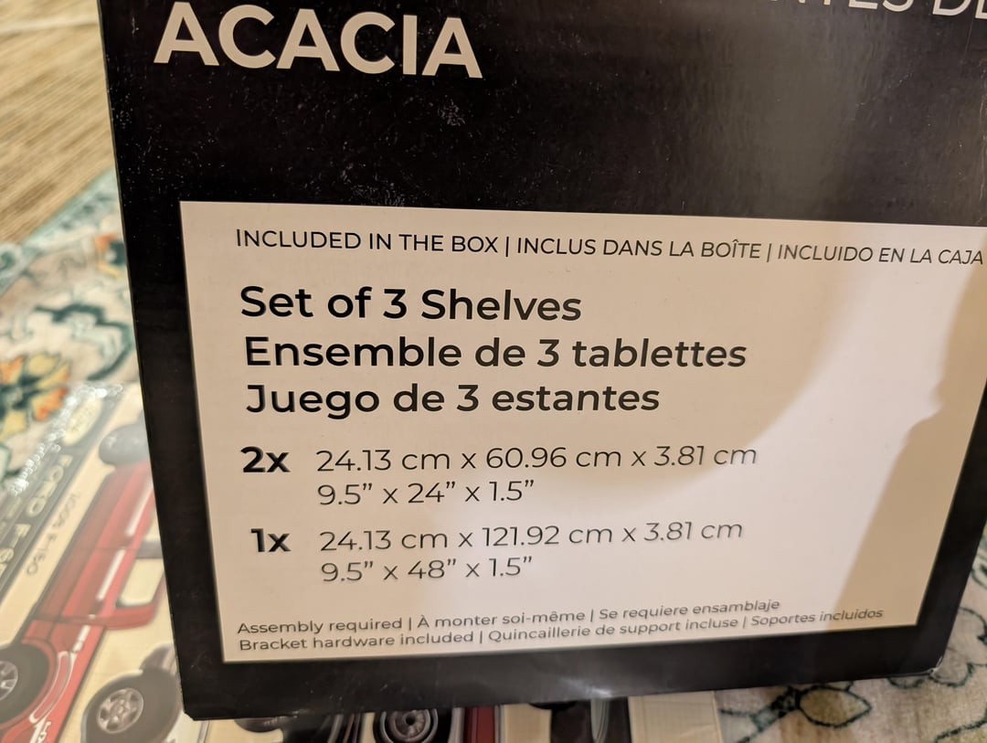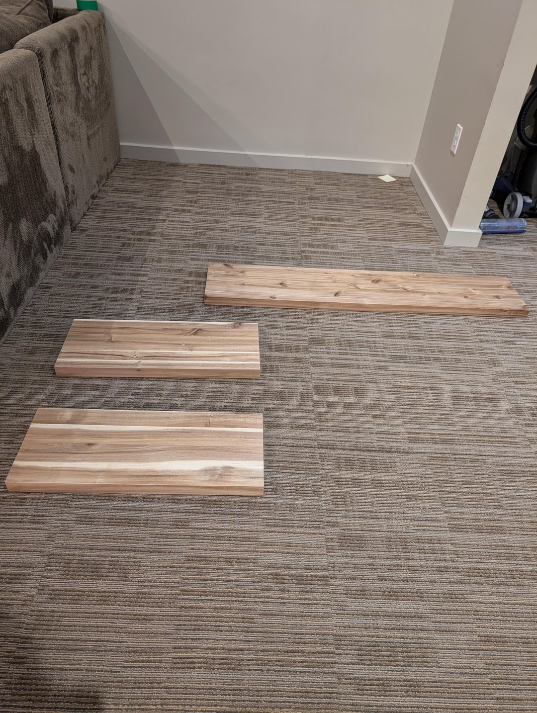 I'm having a dilemma trying to figure out where to put these shelves I just got, and how to decorate this wall in general, it's so huge. The studs in this wall are kind of weird too and there is lots of live wires to the left side so no shelves over there.The large shelf needs 3 studs and the 2 small need 2 each.