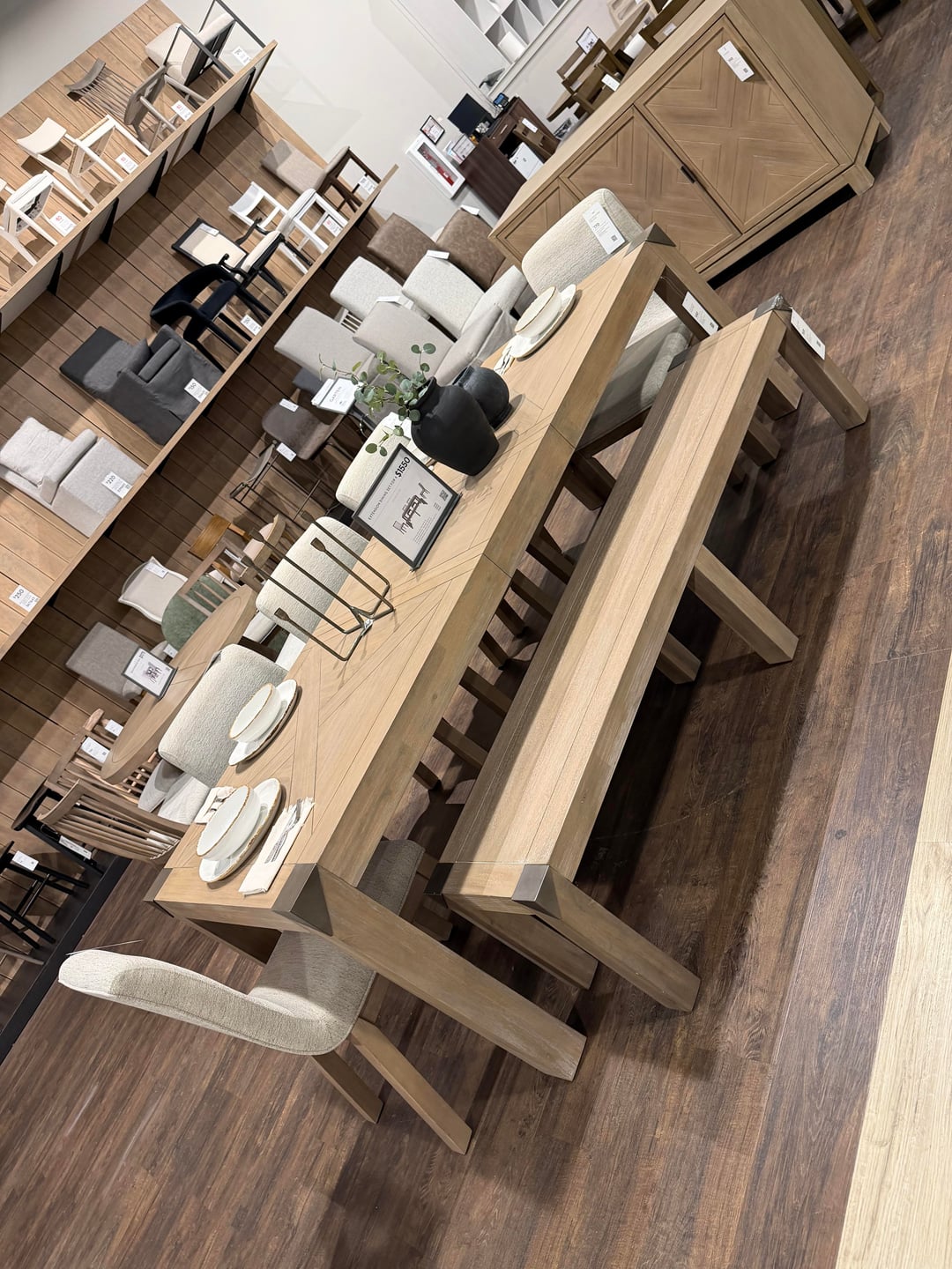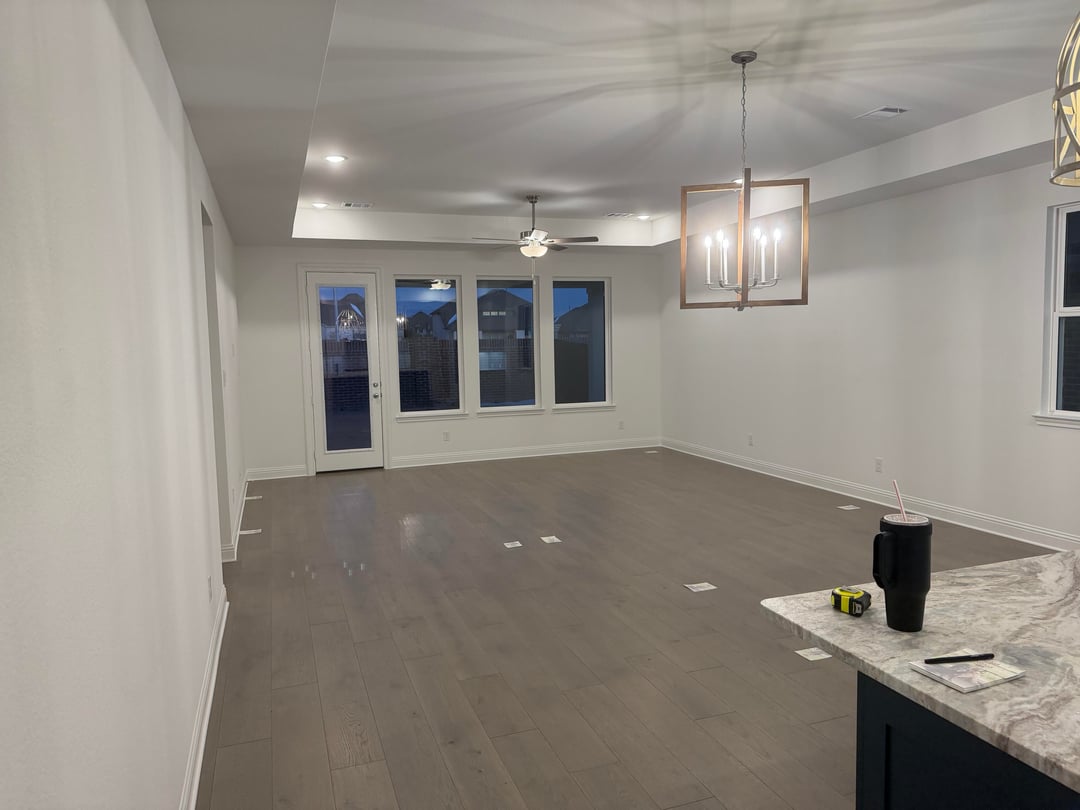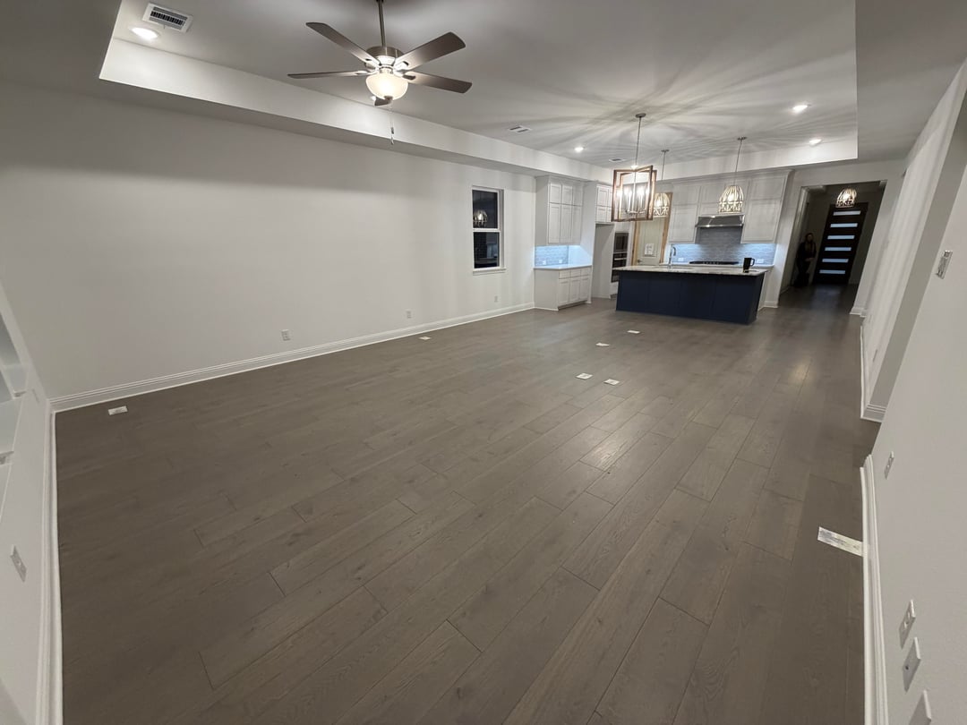 Hey all – we are first time buyers and so excited! We’re gonna be upgrading most of our furniture as my wife and I have collected a bunch of random stuff throughout the years. We are having so much trouble figuring out what color scheme won’t clash with our floors and get the vibe we are looking for – especially on dining table (it’ll go under the hanging light fixture in the pictures). I lean modern farmhouse with natural woods, my wife leans more rustic with darker open pore woods. I’m worried darker woods will clash with our floor. Also – any ideas on what kind colors in a rug in the living room would be greatly appreciated!