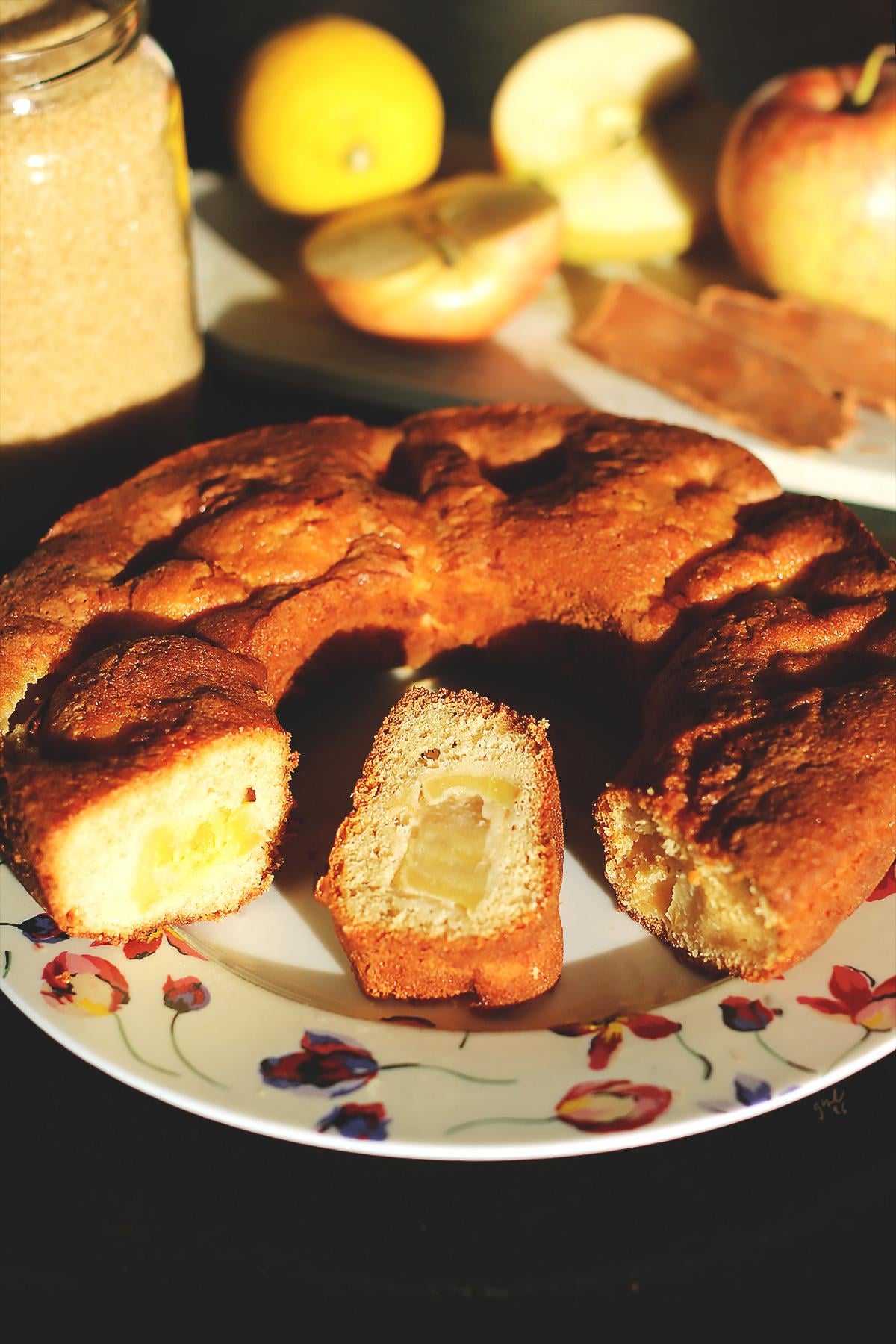 Petit gâteau ce matin, les pommes qu'on a acheté pour les croquer sont un peu farineuses… alors on les a utilisées en gâteau~