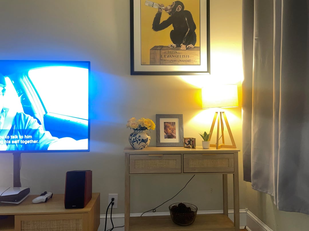 There’s a big empty space above our tv, should I fill it or leave it empty? It feel like it needs something, and my only idea was doing photos printed on 20 x 20 canvases? (Similar to Photo #4) Maybe 2 rows of 3? I’m not good at decorating and very open to suggestions from people with better taste than me!