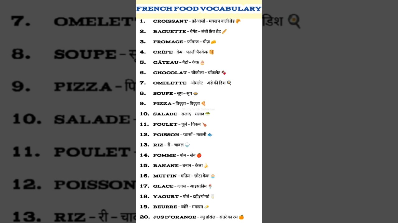 Learn french food vocabulary || French food vocabulary with hindi meanings || French food names ||