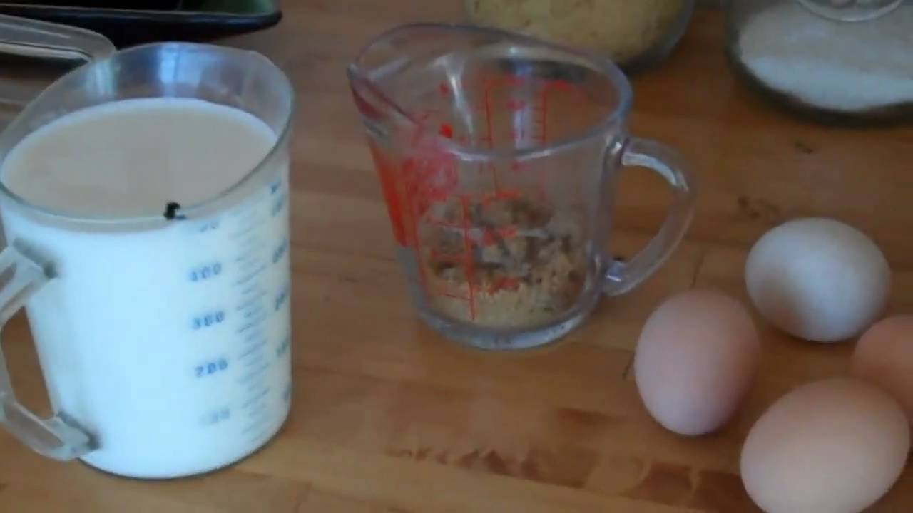Beat eggs & sugar together, add milk & vanilla.