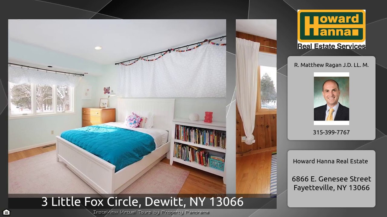The Virtual Tour for the property at 3 Little Fox Circle, Dewitt, NY 13066 listed for $389,900: Other homes for sale by R. Matthew Ragan J.D. LL. M. of Howard Hanna Real Estate: Stunning architecturally designed & renovated home nestled on a near acre cul-de-sac setting. The open floor plan boasts walls of windows, refinished hardwoods, remodeled kitchen w/custom cabinets, stainless appliances, gas cook-top, marble counters & custom made walnut island counter-top with live edge. Inviting dining room has French doors that lead to the four season Florida room with ceiling fan, windows, heated …