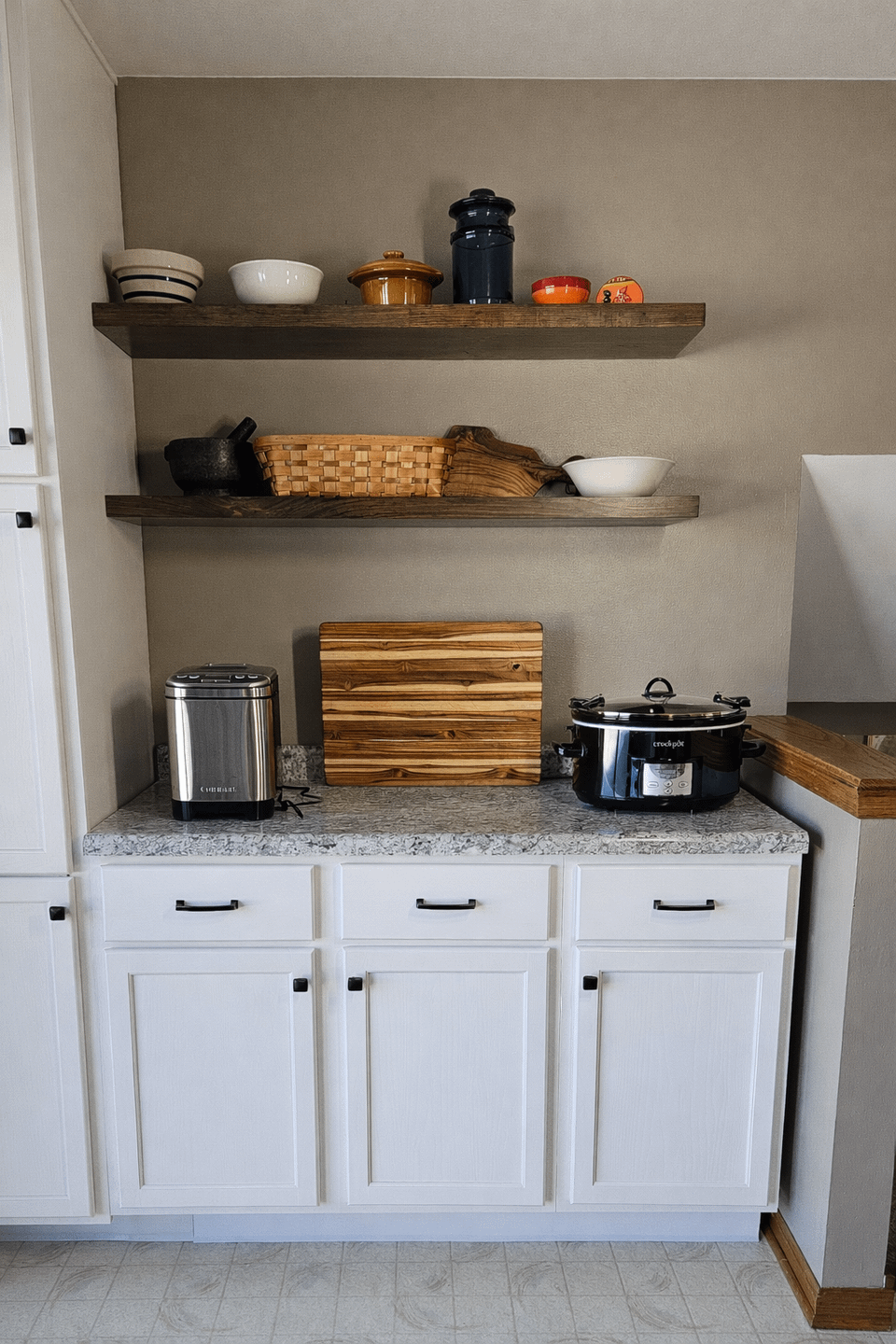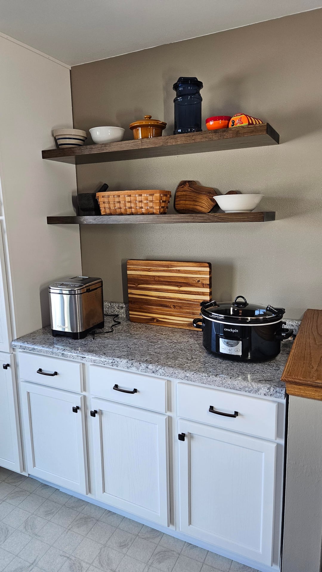 Do you use your bread machine and crock pot often enough to keep them out all the time? I try to keep as many appliances off the counter as possible – I know this doesn’t work in all kitchens but you seem to have decent cabinet space