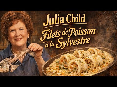 In this classic clip, Julia Child prepares Filets de Poisson à la Sylvestre, a traditional French fish dish featuring rolled fish fillets stuffed with finely cut vegetables and cooked over seasoned rice. Julia demonstrates an old-world French technique by placing a clean fish frame over the dish during cooking, a method used to enhance flavor and retain moisture.