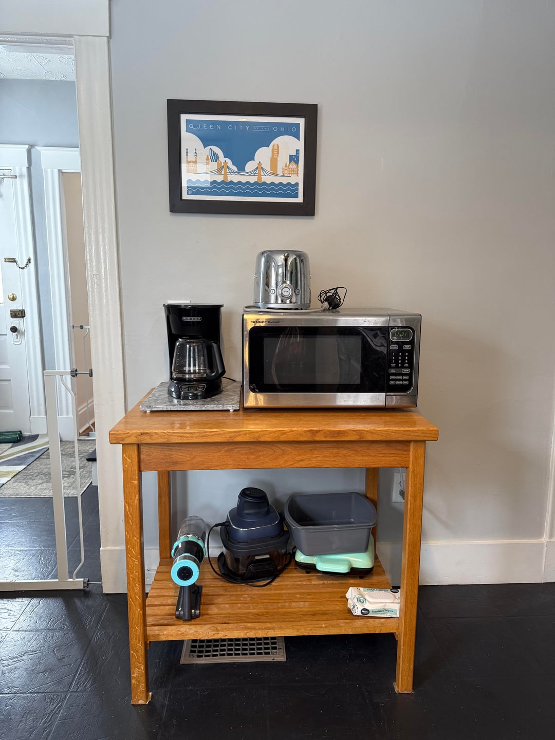 One looks nicer and has more closed storage while the other means less storage but more counter space. Counter space is at a premium – we have 6 sq ft of counter tops plus our kitchen table and that’s it. We also have like, zero storage and have all our kid’s cups/plates/bottles on a rolling, small, 3 tier cart. They love going to the cart and throwing everything on the floor (they’re 4 and 1 years old).