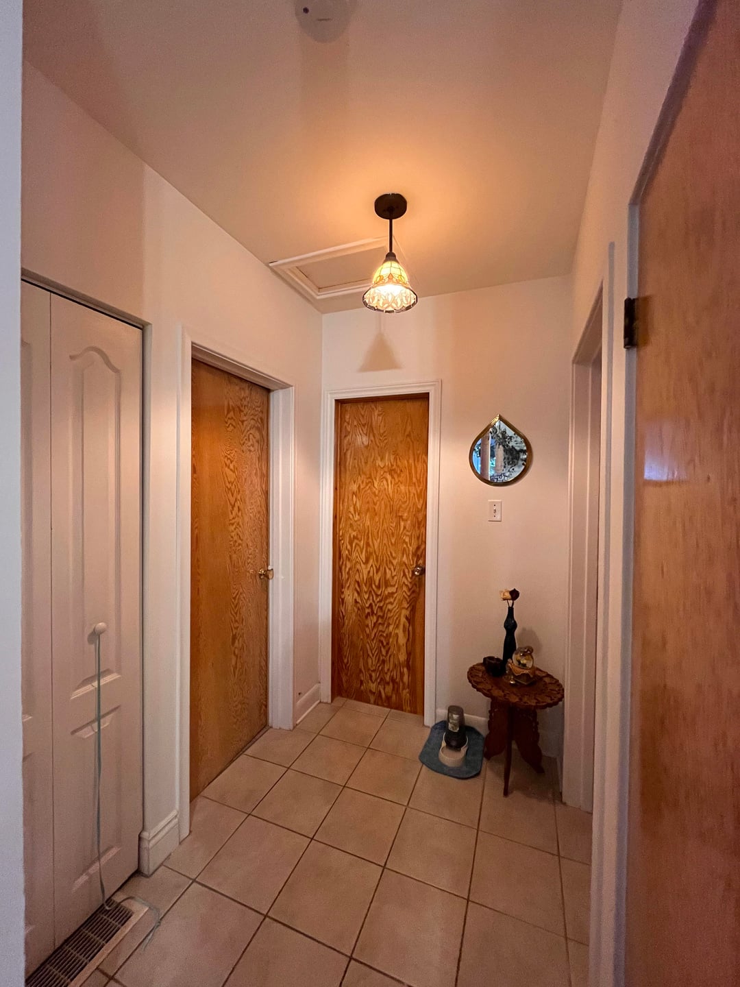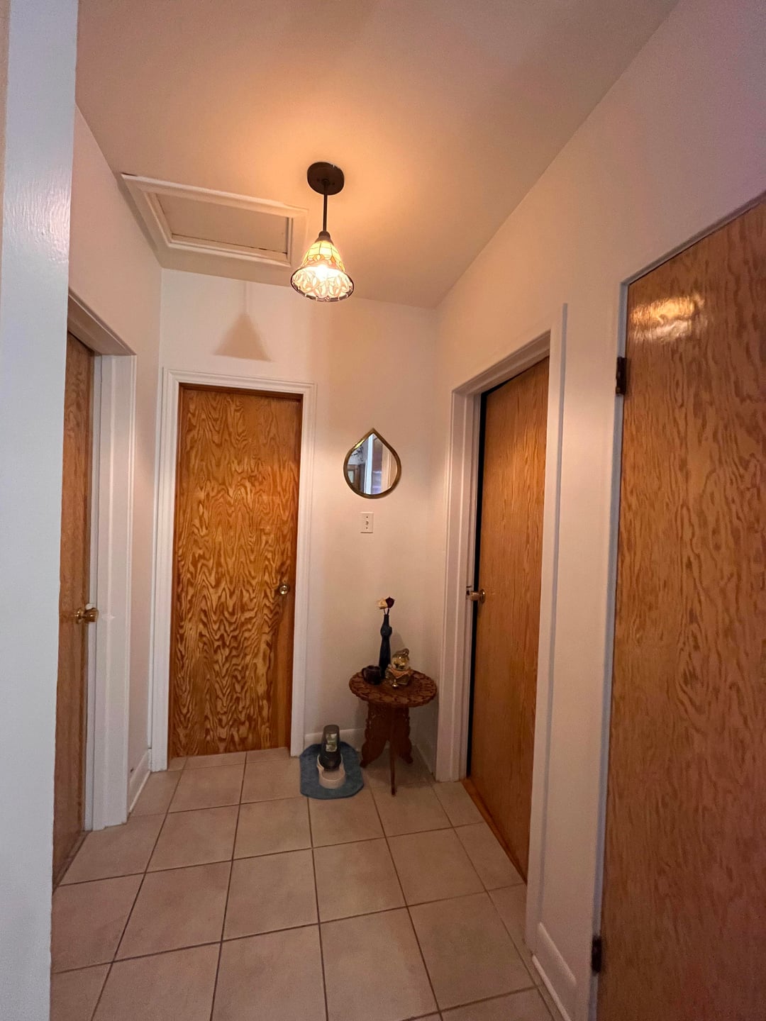 This house came with the stain glass ceiling light which I think would pop more with a dark hallway