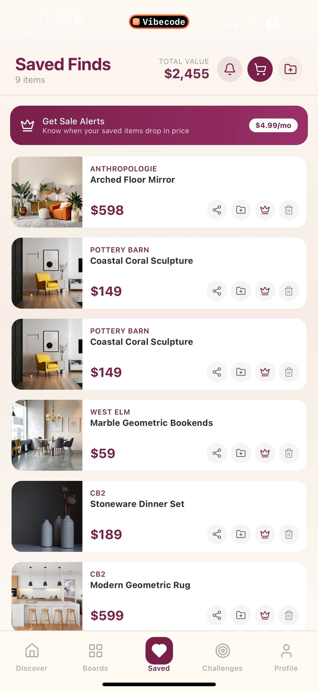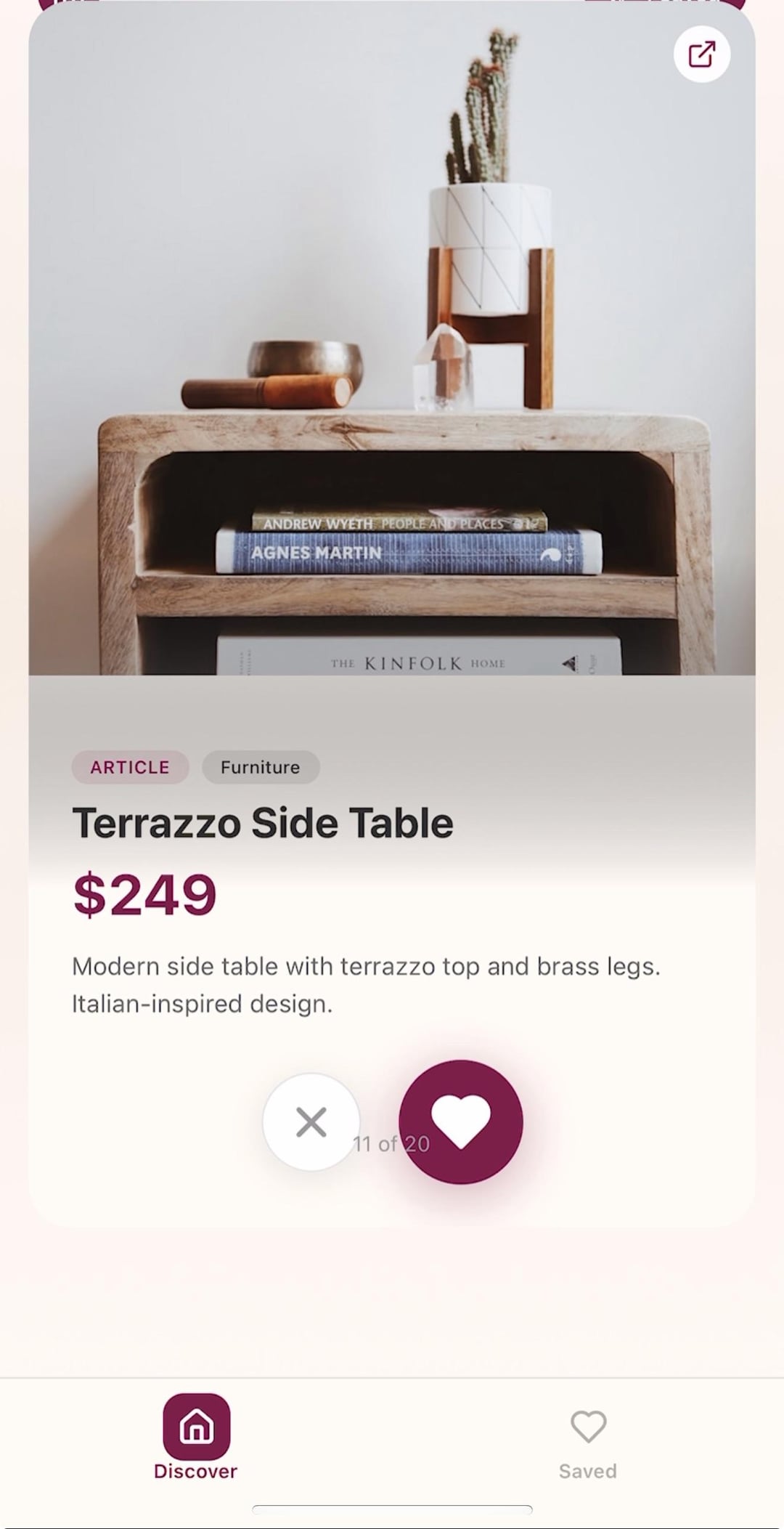 So I built Curate to put it all one one place, all of the top decor retailers and their items in one place. It's like a dating app for furniture swipe through pieces from all the major retailers in one place. Swipe right to save, left to pass. When you're ready to buy, it links straight to the store.