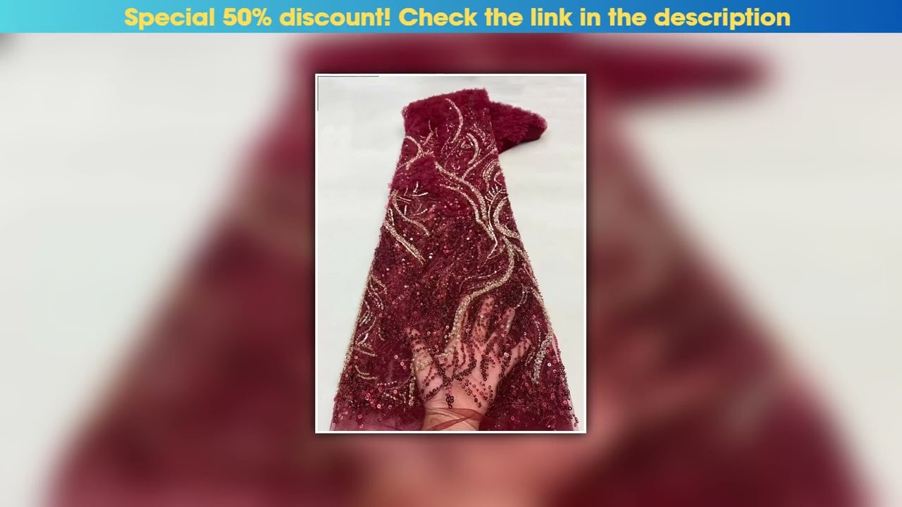 new, arrival, wine, beaded, african, lace, fabric, 2025, burgundy, french, nigerian, heavy, beads, lace, fabric, for, wedding, dress, sew, pxx25150