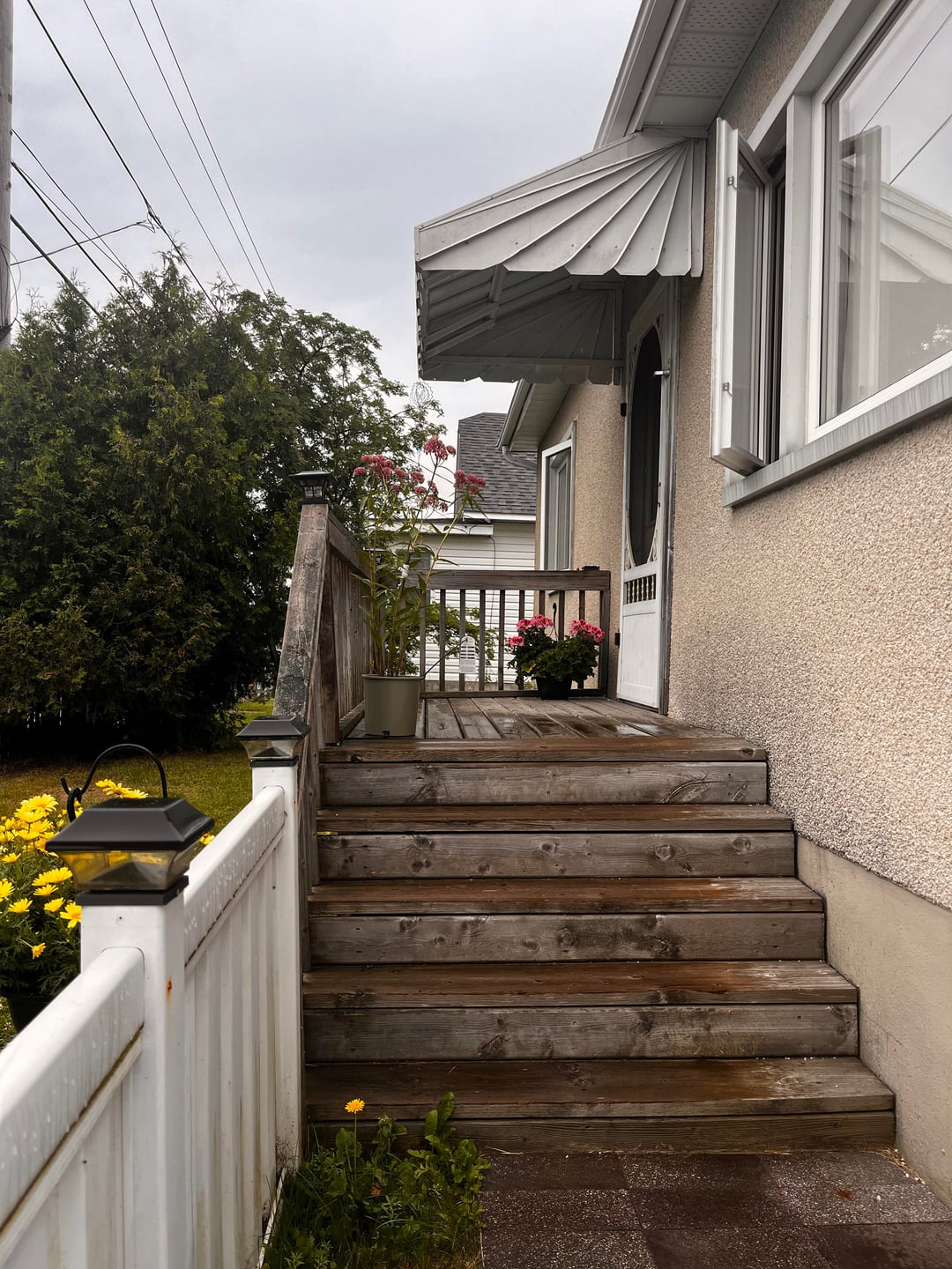 But I want to paint our front door. And leave the screen door white. The colours I have thought about is a butter yellow, or a wine red. The deck will eventually be stained a dark brown.