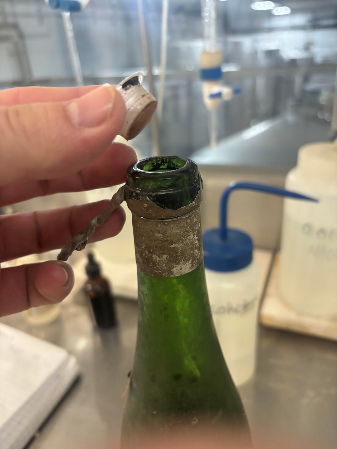 This bottle is one my boss opened last night and brought into the winery today. We’re perplexed by the strange closure. It was under a complete capsul so it seems to have come from the winery like that. It’s from the appellation Savennières. His guess is late 60s early 70s. It has that very heavy and soft lead/tin capsule material. The wine itself is very oxidative and nutty but the texture is quite smooth. It seems atypical of the region to make oxidative wines like this but I’m no expert. Have any of you seen this closure type before?
