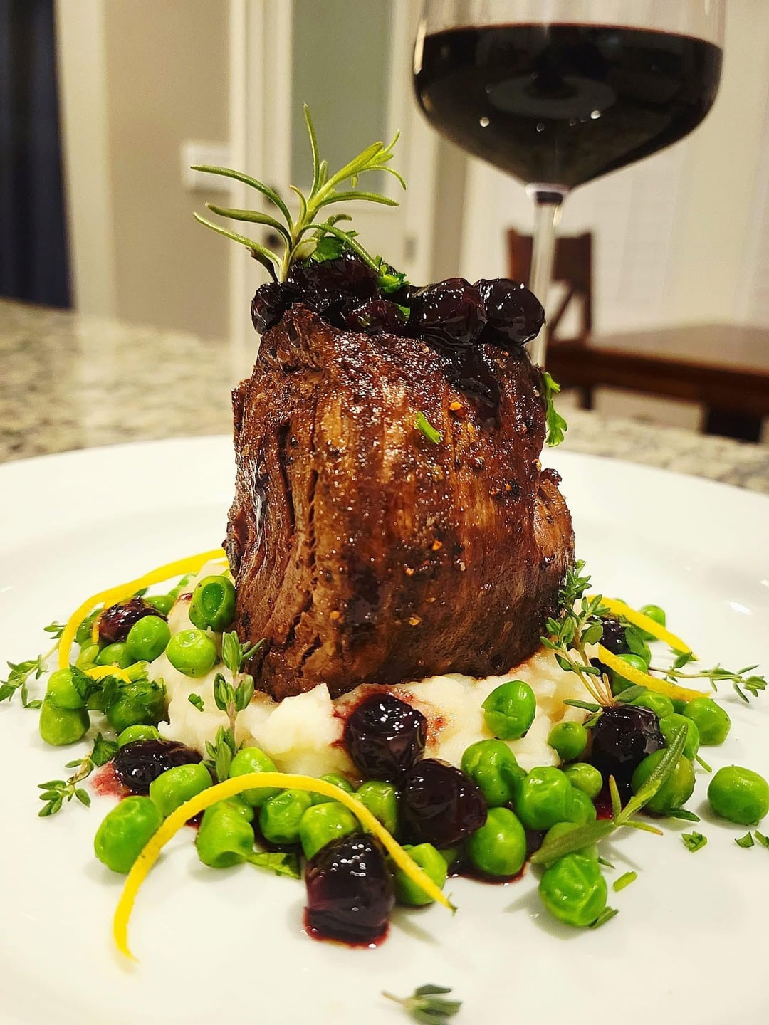 Made a blueberry red wine reduction for the pan seared steak, the flavors of the wine with the savory steak complemented each other well.