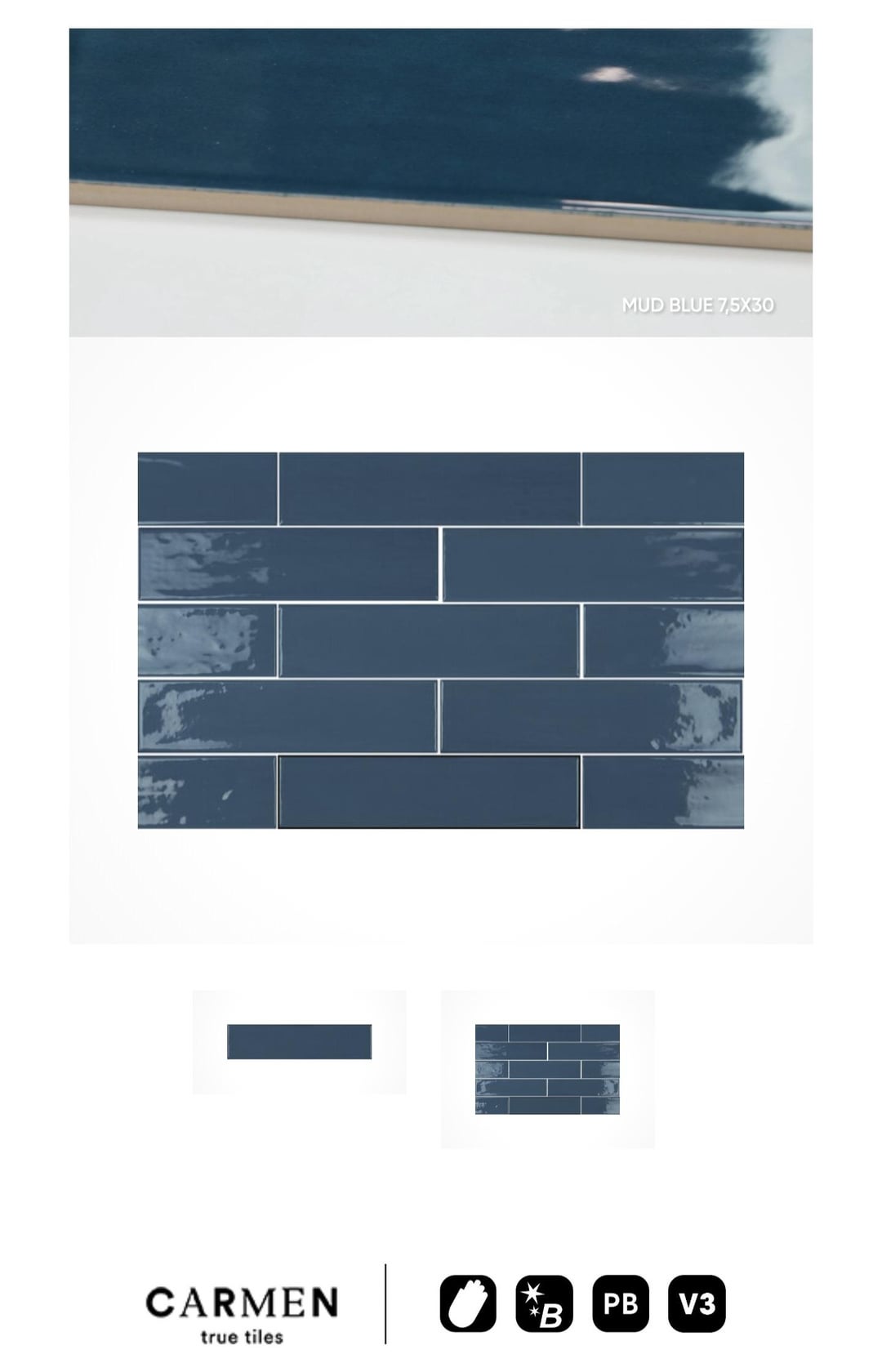 The three wall colours are mud blue, mud rose and reality acqua. All of the bathrooms will have brushed brass fixtures.