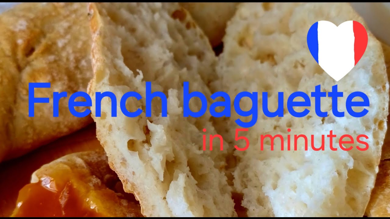 French Baguette. Anyone of us who has been to France or at least visited a French bakery remembers the extraordinary aroma of a French baguette. In fact, it is not difficult to make and you can make it at home with just 5 minutes of your effort; all you need it is flour, baker’s yeast, water and salt; this is the magical recipe for making a baguette. All you need is a 5 minutes of time. Baguette dough is easy to make, you just need to mix the ingredients, do not knead it under any circumstances, otherwise it will be very tough; all you need to do is mix the ingredients and then leave it to rise for 8 to 12 hours. I prepare the dough in the evening so that I can bake it in the morning for breakfast.Overnight the dough will undergo proper fermentation and will be not only tasty but also healthy; in the morning, you divide it into two parts, place it on baking paper, let it rise, and then you can bake it.