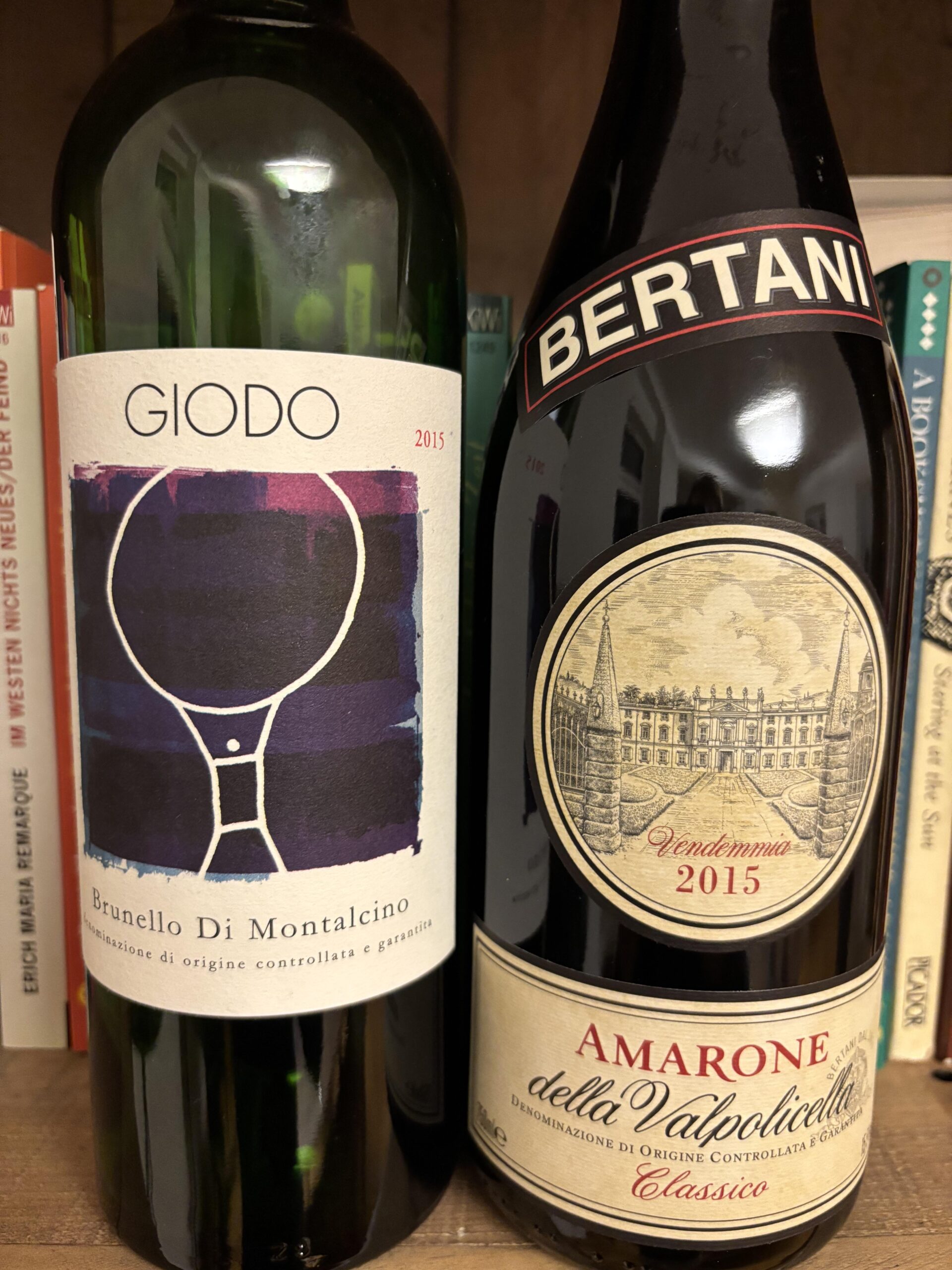 Wine 2) 2015 Bertani Amarone, Valpolicella Classico, 80% Corvina, 20% Rondinella, 15.5% alcohol.
