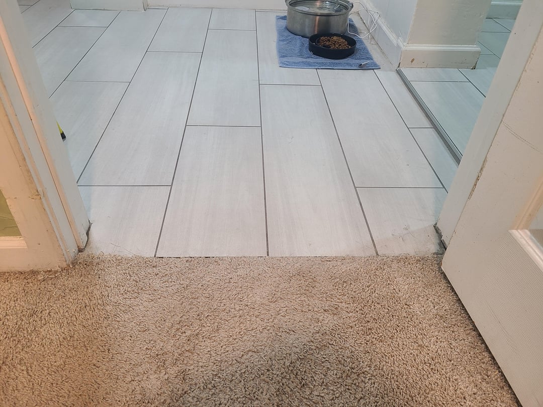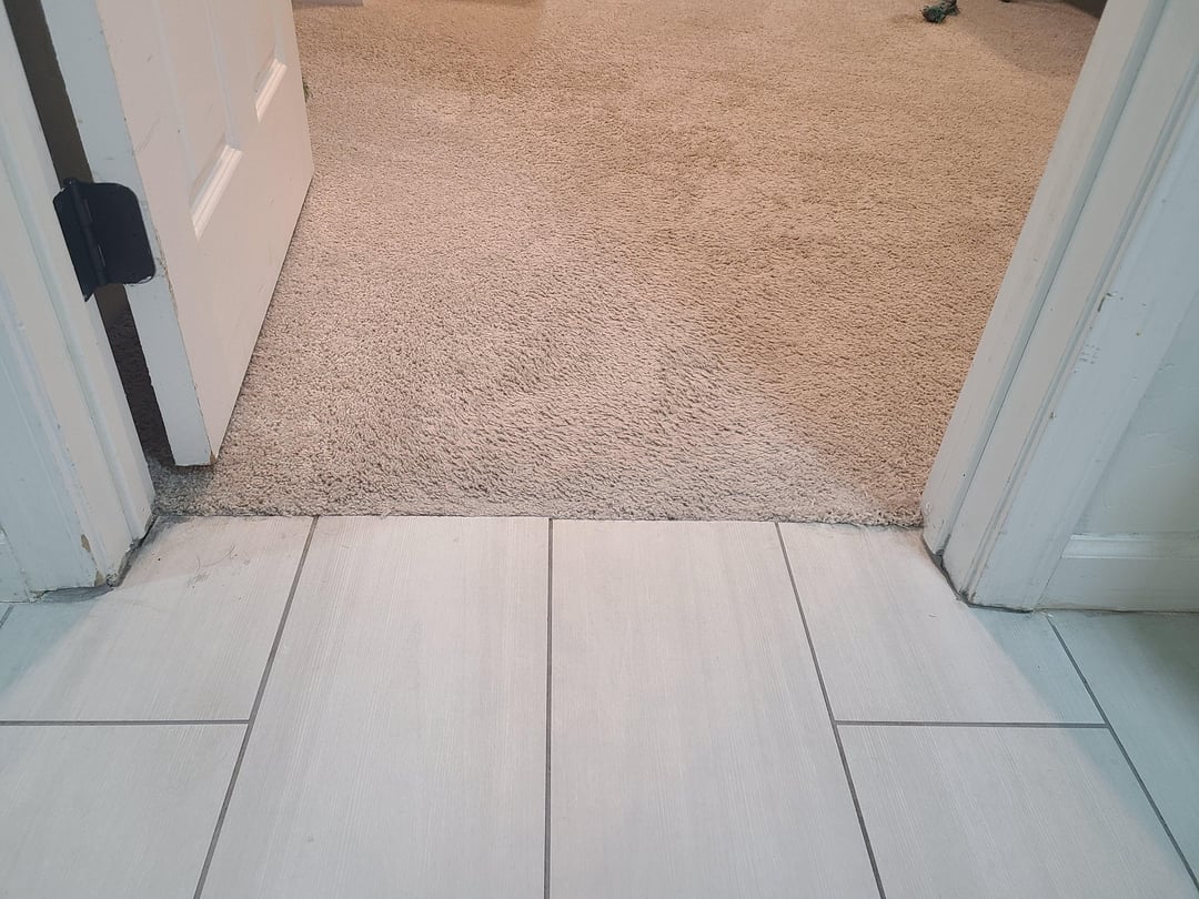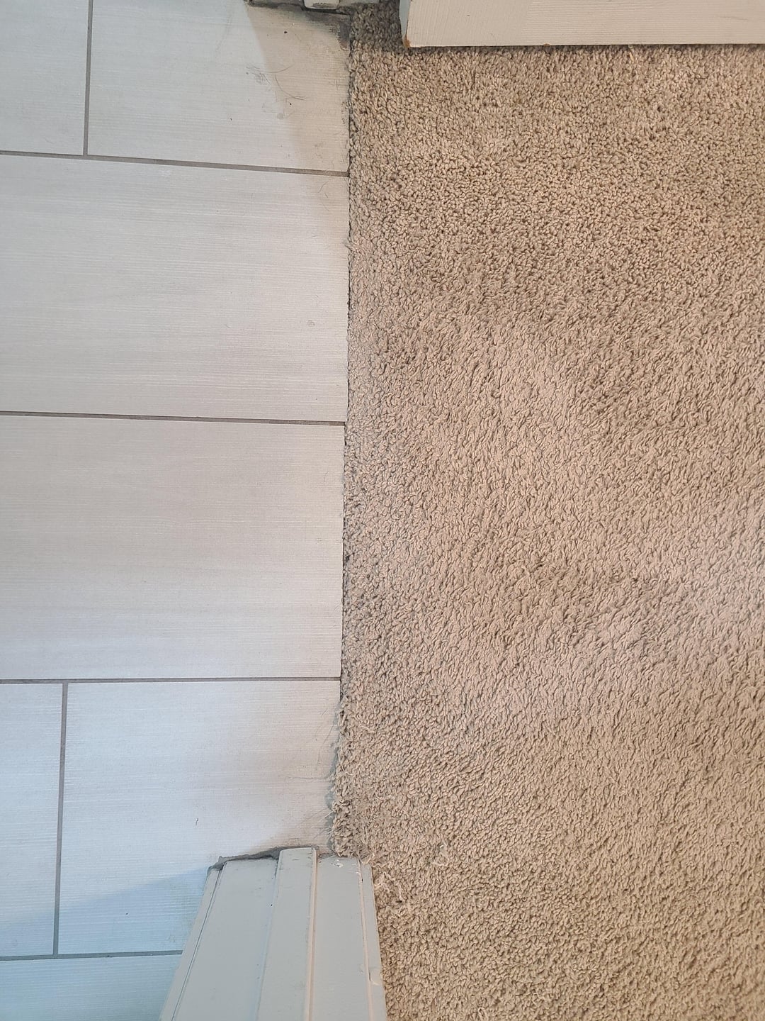So, I think I'm stuff with the white tile. What can I put next to it, that would look good? Would different tile weird? Maybe just rip out carpet and make the concrete underneath nice looking?