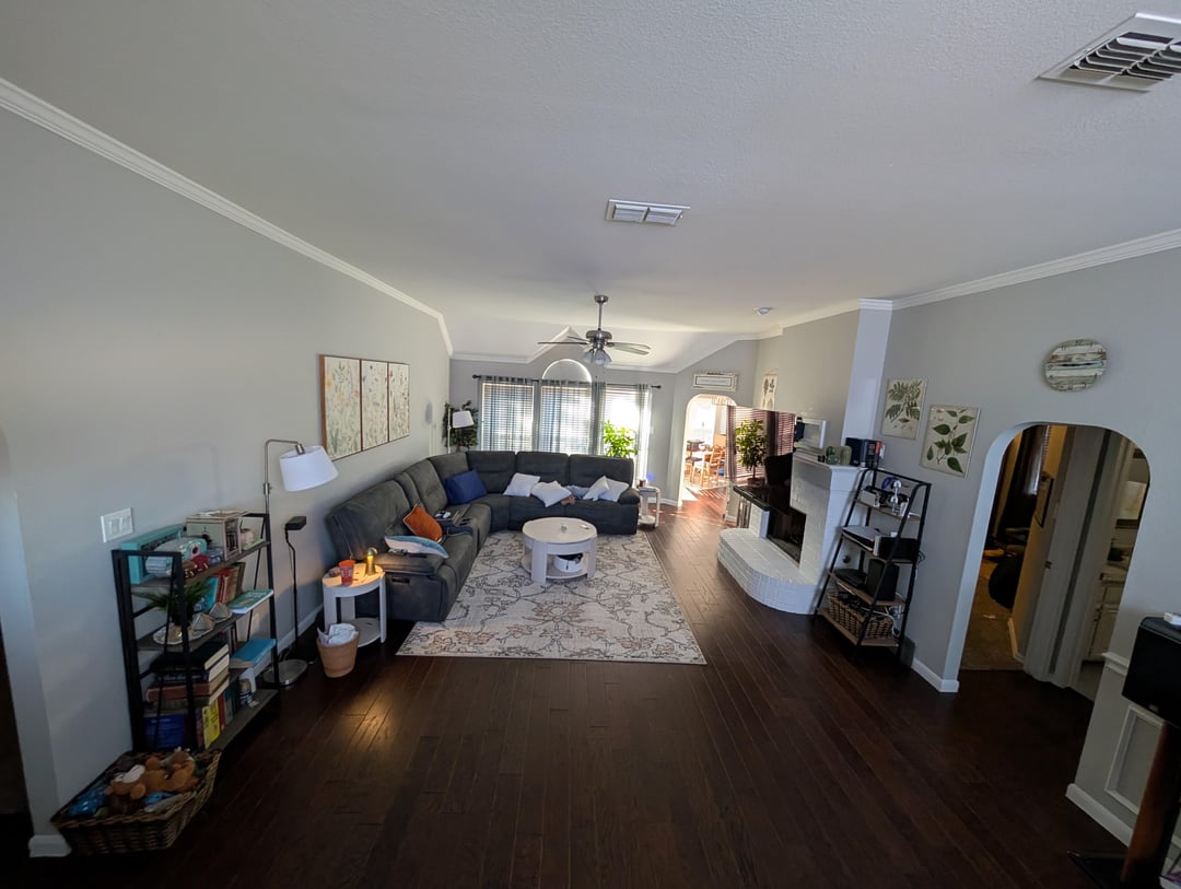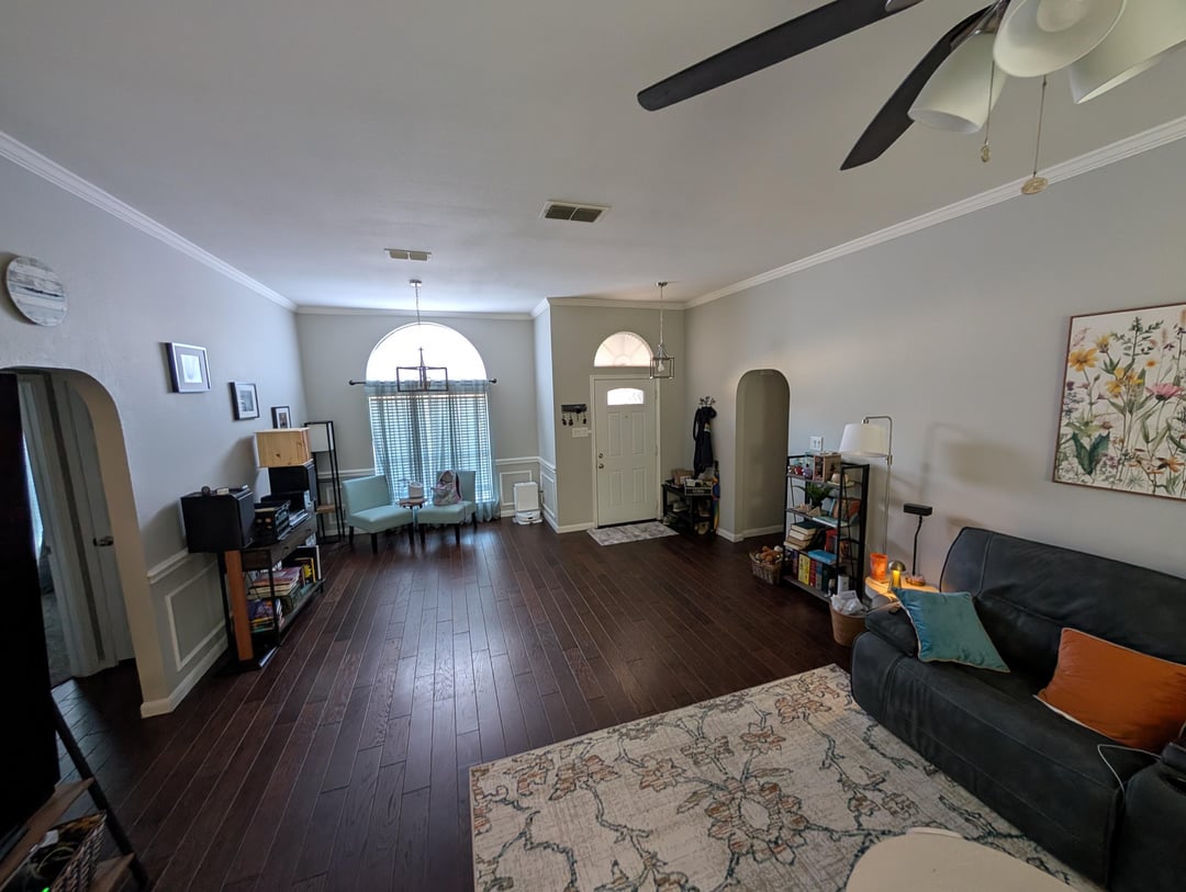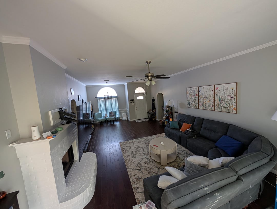 My wife and I have moved 8 times in the past decade (for work/school reasons) and have finally settled in a home. I have tried to make this large living/dining space feel warm and cozy but it just feels kind of cluttered and incohesive. (ignore the white couch cushions for now I'm washing the covers for those).
