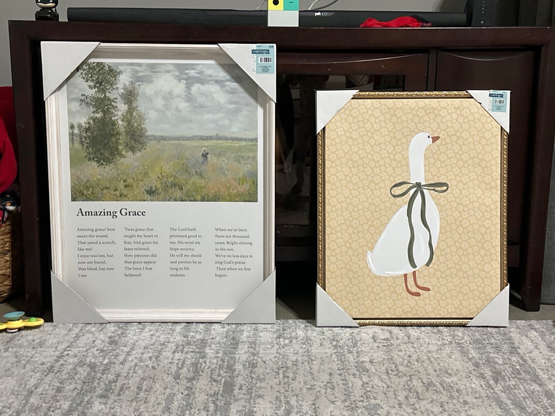 i bought these photos today and i’d love feedback if you think they go well together and how you suggest i place them in this corner. ignore that my chair cover is dirty because the dogs keep jumping in it right now and it’s been wet outside.