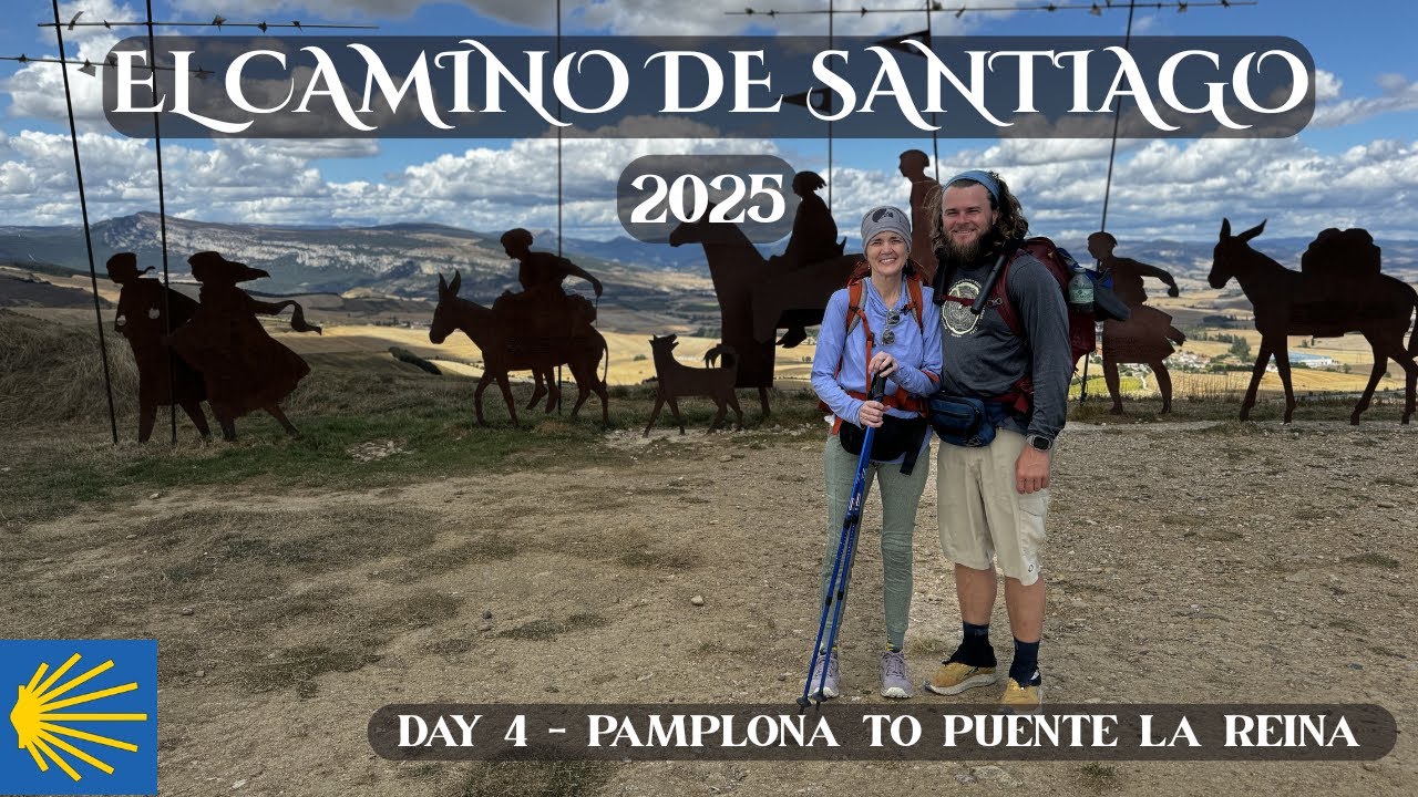 Slept great at our hostal in Pamplona, went out early and we got a gourmet breakfast with our new British bestie, Mandy. I got a milkshake and a delicious tapa. We packed up and left Pamplona, walking our way through the town we stopped at a gear store and Mom bought some trekking poles. We worked our way through town and soon left the city, back into fields and farmlands! We slowly ascended up through some beautiful hillsides, ruins in the distance, and arrived to the first town of Zariquiegui. Stopped for some water and mom got a cafe descafeinado! Flew the drone around and got some cool shots of the surrounding areas. The next section was the crux of the day, ascending up to the Mount of Forgiveness. There were some monuments remembering those who had passed before and honoring those who were killed in massacres throughout history here. It was windy, but so beautiful. My mom and I were so distracted from hiking because of the delicious blackberries, they were everywhere along the trail. So delicious! We were full on berries, also saw a couple of really cool green lizards. In the midst, mom dropped her glasses and luckily we only went back a 5-10 minute run and found them deep into the berries where she had been foraging! Once we summitted, the long descent came. I was nervous for Mom’s knees but she kicked butt and made it with ease! We arrived into a ghost town of a city because of the siesta but looked like a small farming community, then the next town had their annual parade and festival going on, they actually had a mini running of the bulls. We finally made it into Puente La Reina and grabbed all of our groceries for the night, fresh bread, salami, and cheese. I tried a cheese flavored gelato and it was interesting but delicious. We got up to the albergue which was all the way across town and up one more hill that was struggle. It was almost like a separated camp from the rest of town, and a big warehouse look. There was a pool which the Slovakian guy said was f’ing cold, but I had to jump in. Mom dipped her knees it was very refreshing. Had a quick picnic and then went into the shower, wash clothes, unpack routine. We got a private room but it was really just a huge garage bay with little plywood walls put up around our beds. Slept amazing! Another great day on the camino!