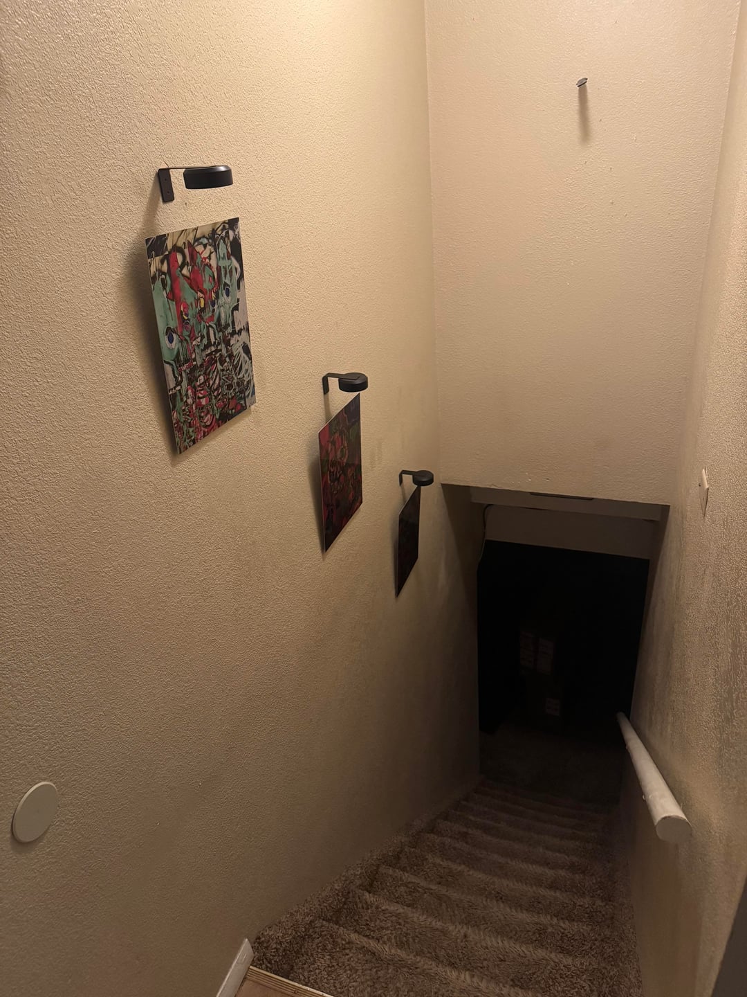 Hello everyone, I hope this is the right sub. I have a series of 3 metal wall arts, and am really thinking they could go good in my stairwell. I’ve landed on this, but it just doesn’t look right to me, and I can’t figure out why. Any ideas? TYSM