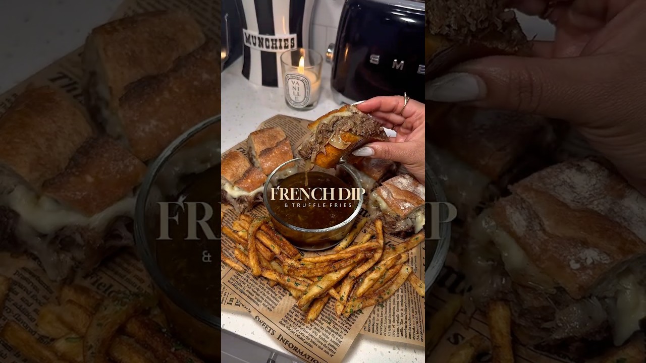 Cut it into small sandwiches and serve them straight out of the oven with the delicious Au Jus on the side 🤤