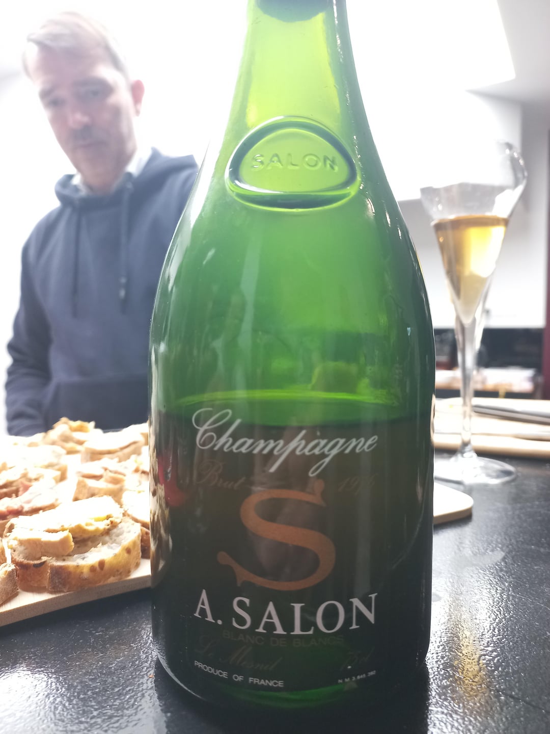 My first Salon, vintage is 1976. I had quite high expectations : super old, so don't sweat it, but Salon, it has to be something, right ? On opening: very reduced nose, like a bad Jura Vin Jaune. Mouth : very small bubbles, a pleasant surprise, fresh and very smooth on the palate. I knew after a while it would get interesting. We left it aside to come back later.