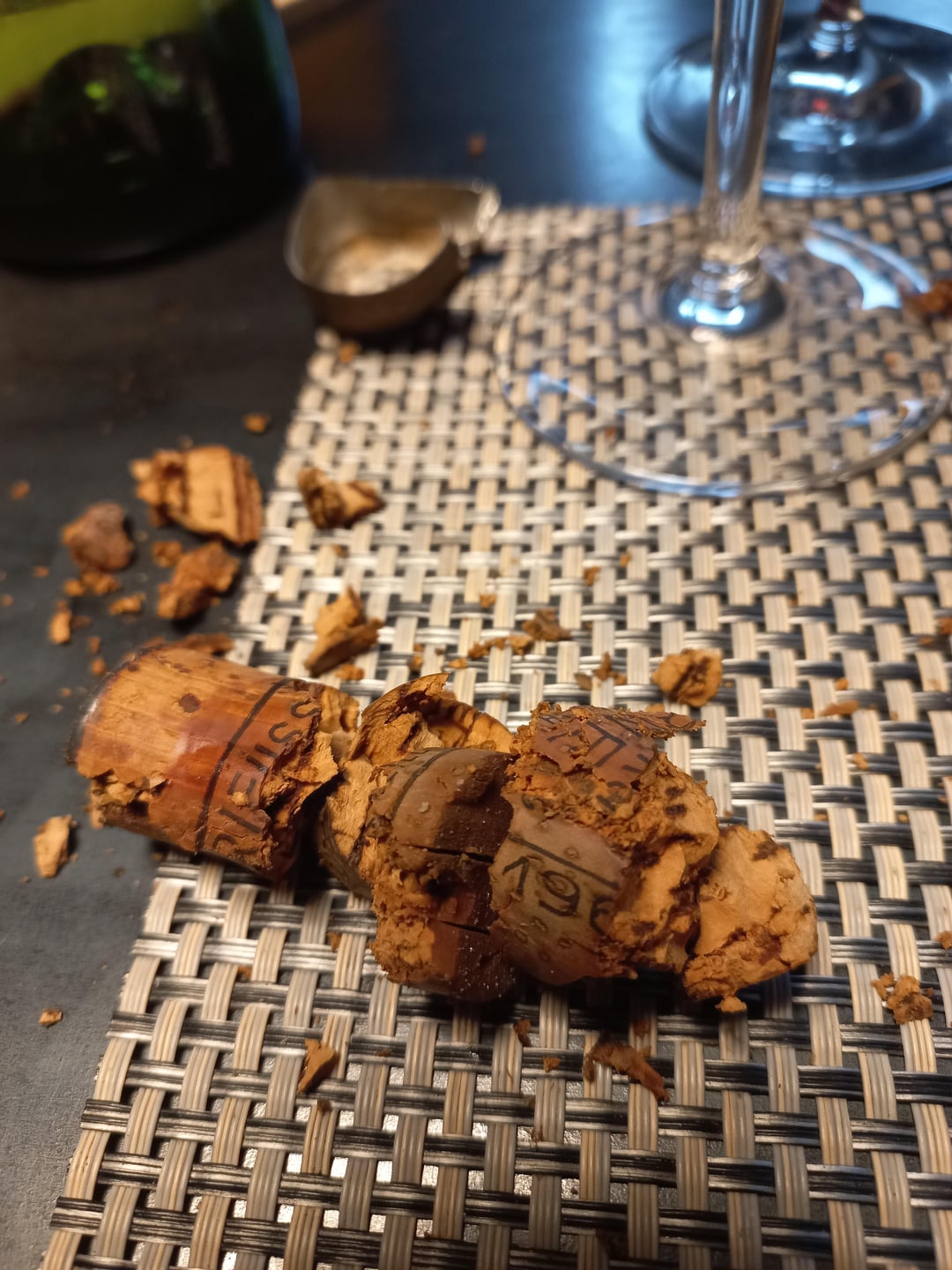 The cork was very soft and wet, yet I managed to take it all out, to the surprise of the gang. Yay.