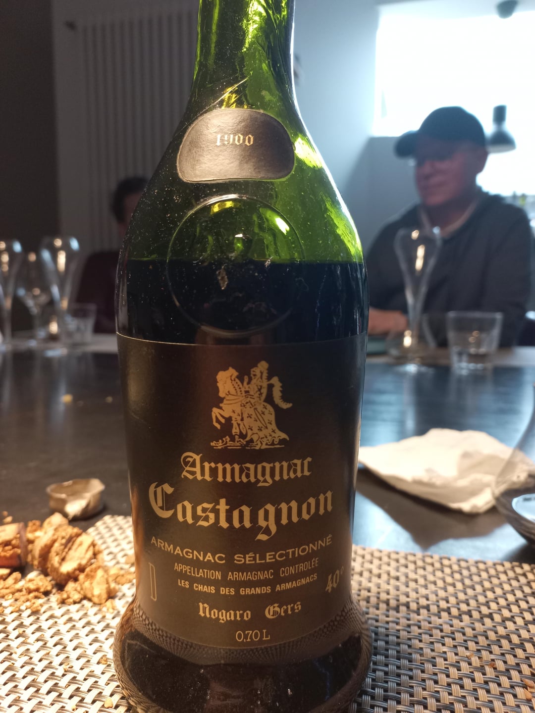 To finish the night : Armagnac 1900. Fruits, almond, freshness without the blast of young alcoohol scents. Very pleasing, much more than anticipated. A.