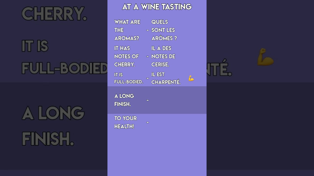 Sound like a pro at your next French wine tasting. Learn key phrases to describe a wine’s aroma, body, and finish in French. #FrenchWine #LearnFrench #WineTasting Advanced FrenchFranceFrenchfrench for foodiesfrench vocabularyfrench winelearn frenchloversTastingVideoVlogWinewine tasting frenchYouTubeWrite A CommentYou must be logged in to post a comment.