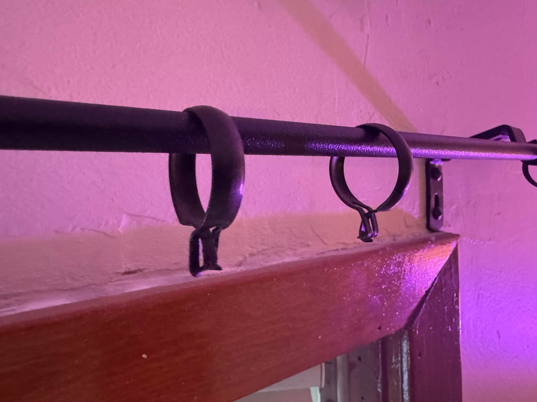 So, these pleated curtains were hanging from those rings on that rod using those hooks. I know this because I took them down to wash them, and now I have no idea how to reassemble them. The only thing I can think of is the J-hook slides up the inside of the vertical channel caused by the pleats, but that doesn’t seem like it’s strong enough to hold it. And more importantly there’s no stress marks there (or anywhere) indicating that the curtains were hung there. And the curtains were hanging for about nine years before I took them down.