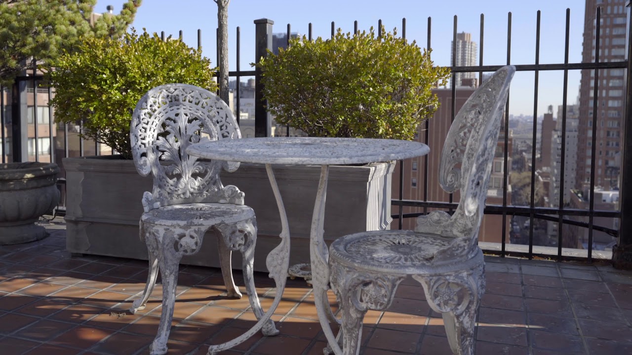 Sun-flooded with south and east open city exposures, this top floor penthouse has a glorious landscaped terrace with outdoor dining and lounging. The light throughout this space is absolutely magical. The elevator opens directly to a private entry gallery. There are two bedrooms and a library with three baths. The master bedroom has french doors that open to the south-facing terrace and a gas fireplace with an adjacent five fixture skylit marble bath. A second sunny bedroom is en suite. There is a library/media room, 30-foot living room with gas fireplace and french doors that open to the landscaped terrace. Sunny exposures South, East and North through oversized casement windows provide City views and an exciting Manhattan landscape. The sunny square kitchen is spacious, with custom mahogany cabinetry, a center island, granite countertops, Sub-Zero fridge, double wine coolers, Garland range, Miele dishwasher and washer/dryer. Additional features include a Crestron smart home system and surround sound, Lutron lighting, central AC, electric shades, retractable awning, 10-foot ceilings and generous closet space throughout. (Note: Penthouse B is also offered for sale as a combination with adjacent PHA to create a full floor ~5600 SF interior, ~3200 SF exterior penthouse with grand proportions. See listing for PHAB).