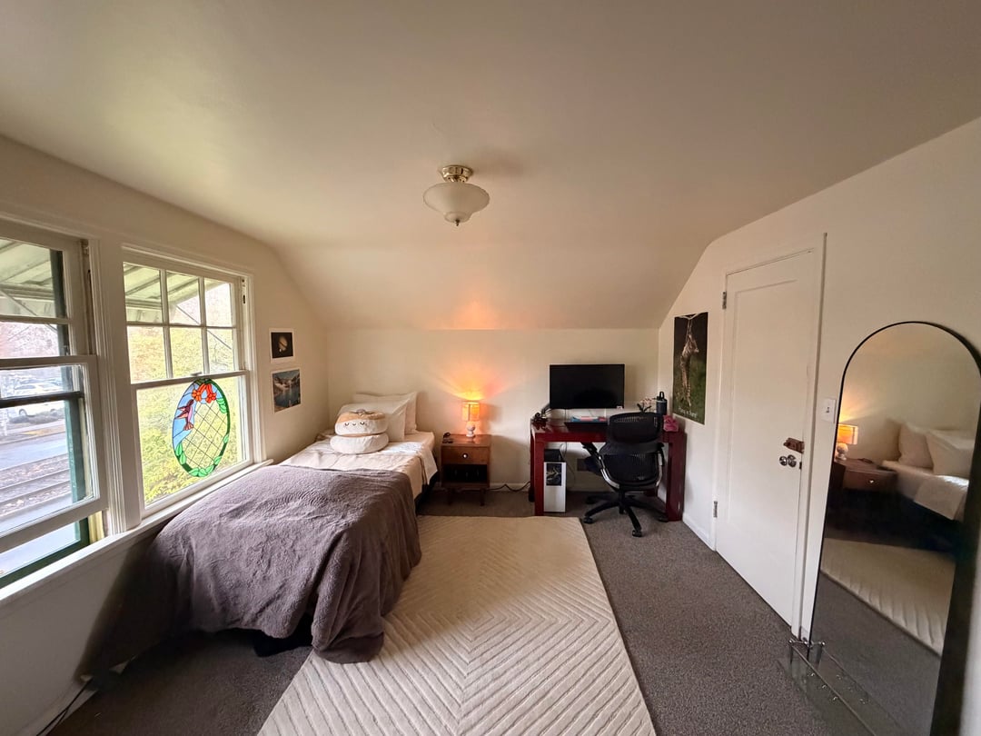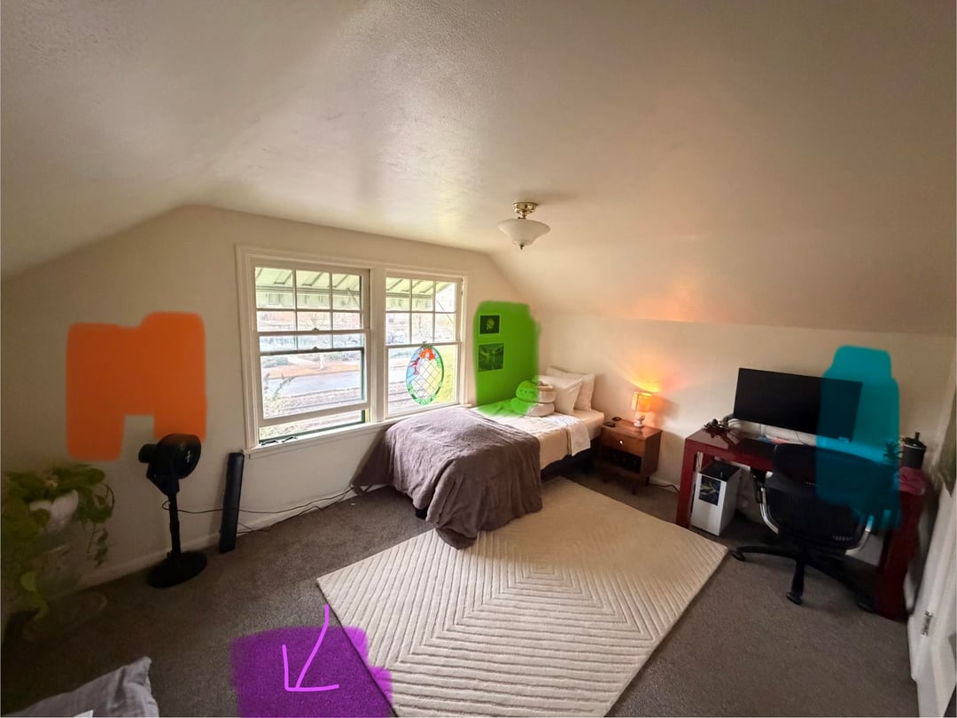 Hello!! I was wondering if anyone has any ideas as to what layout would look best for my bed, desk, and vanity (pictured in the last photo). I would also appreciate any suggestions for decorating. I’m having a hard time with the sloped ceilings. Thank you in advance.