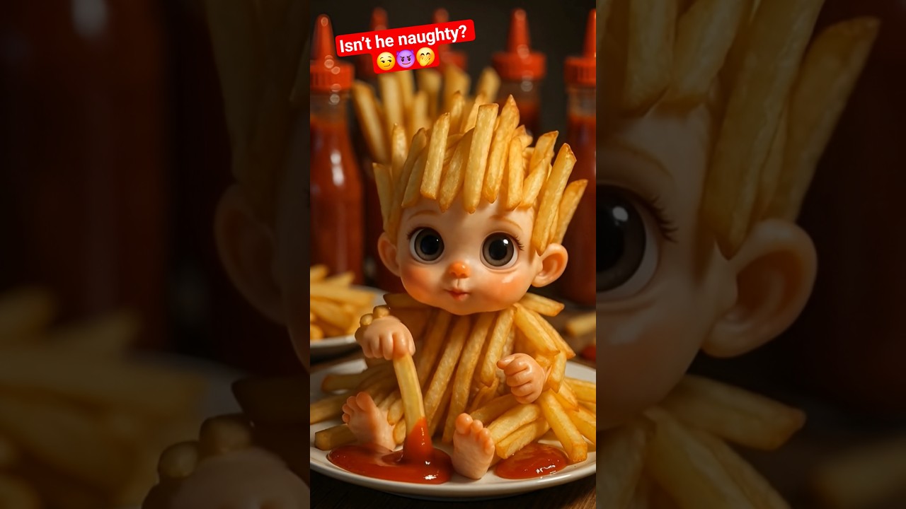 🍟👶 Meet the cutest (and weirdest) baby ever… made entirely of French fries! Watch as this tiny fry baby munches on its favorite snack — French fries! 😂