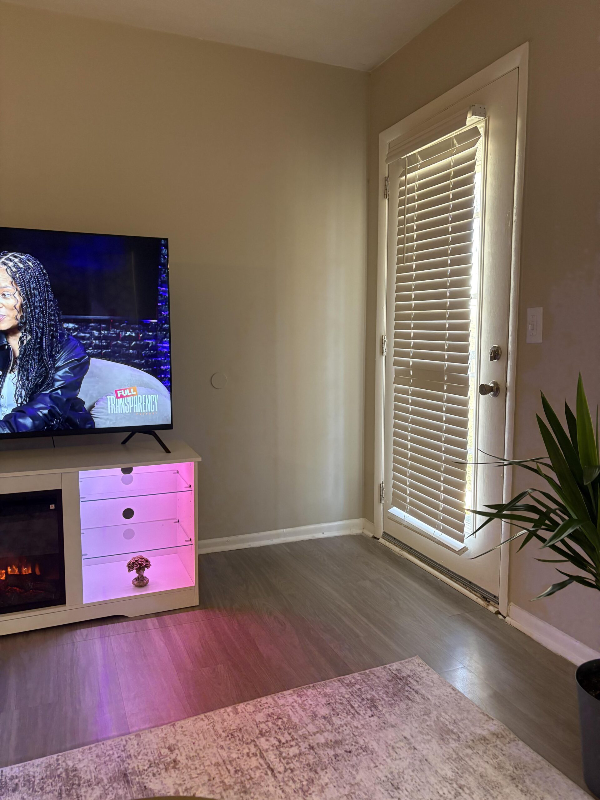 There’s a door immediately to the right that swings fully open and clears this wall, so anything bulky or deep wouldn’t really work. I’ve been debating whether this space should stay empty or if something light like a plant, wall art, or another idea would make sense here.