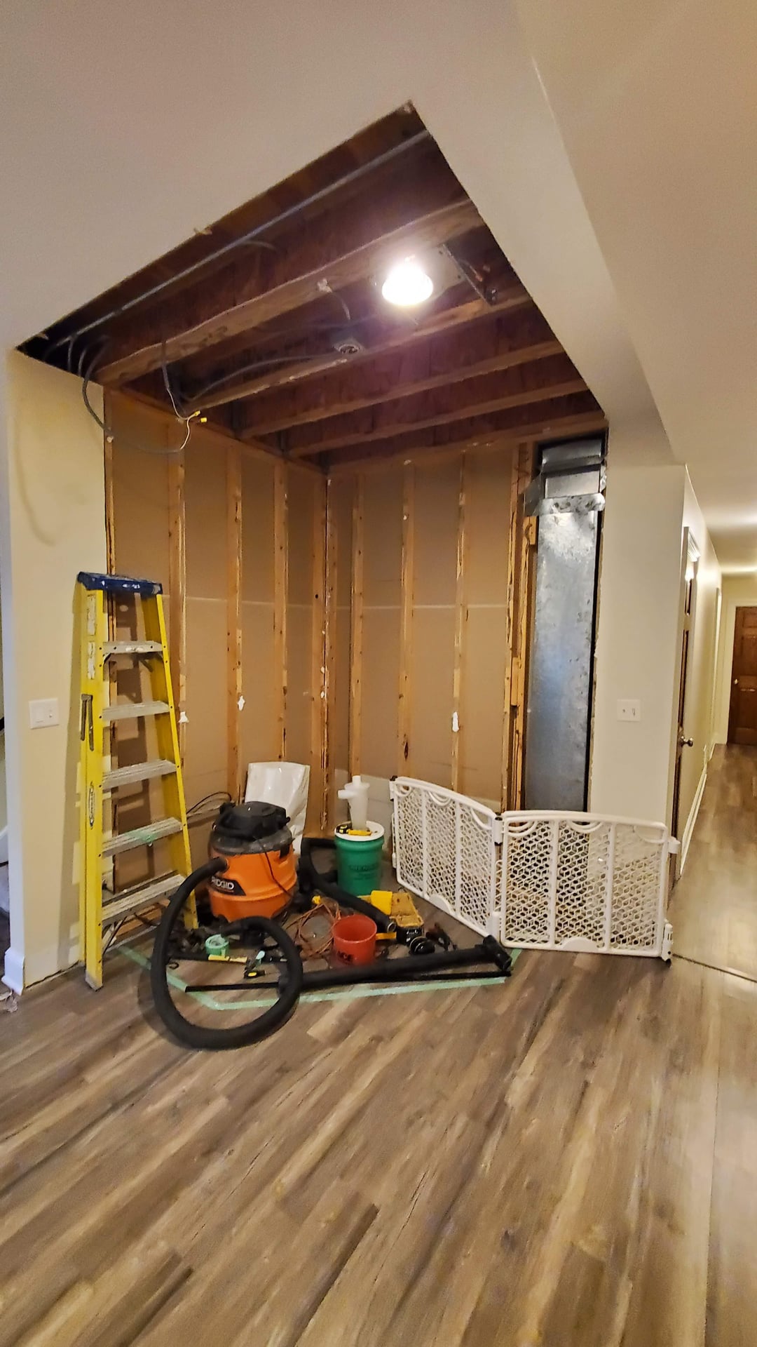 I finally selected this under utilized interior corner by the stairs as a workable solution. At first we were just going to build a corner cabinet, but it didn't fit our inventory when I planned it out. Expanded it to fit the entire space and voila.