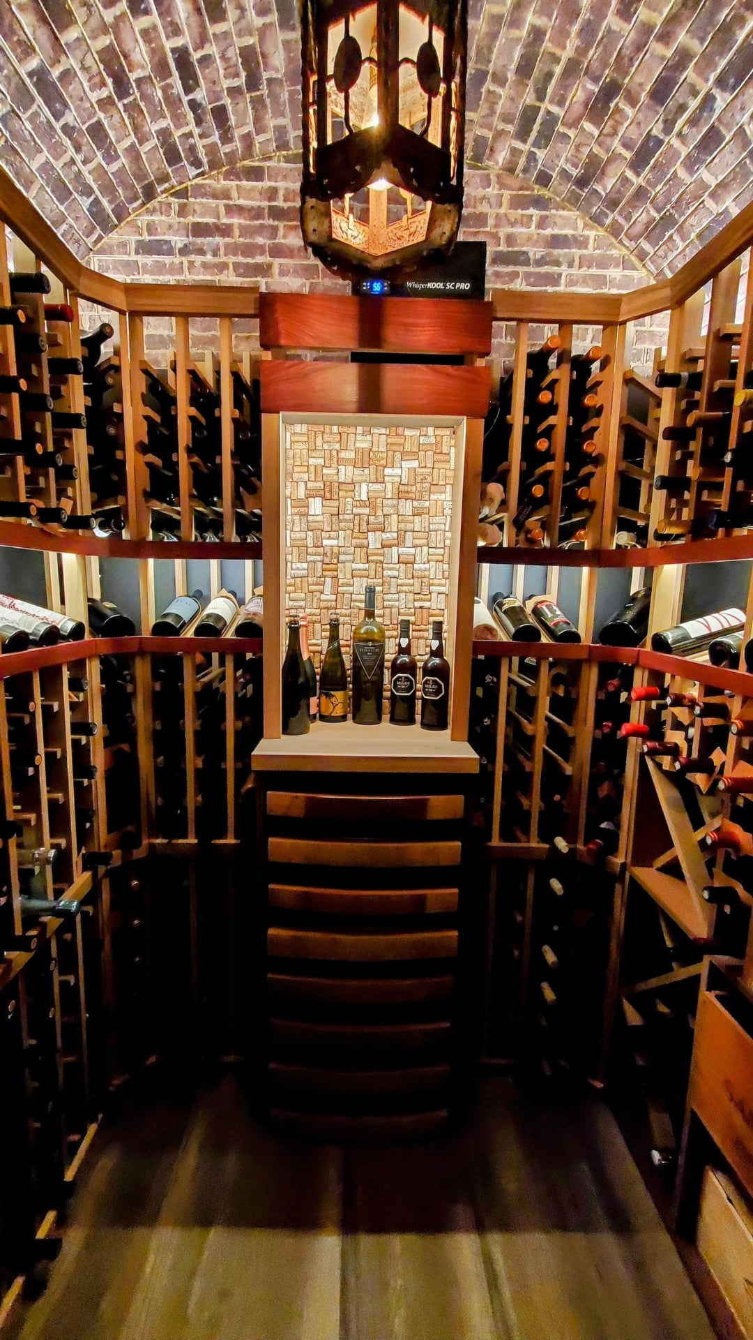 Holds about 400 bottles. I built a shelf on the lower right for wooden cases. In the old world line of thinking, I've found my root veggies/garlic potatoes last much longer sitting on a wine crate in the cellar than they do in the pantry and give me some natural humidity.