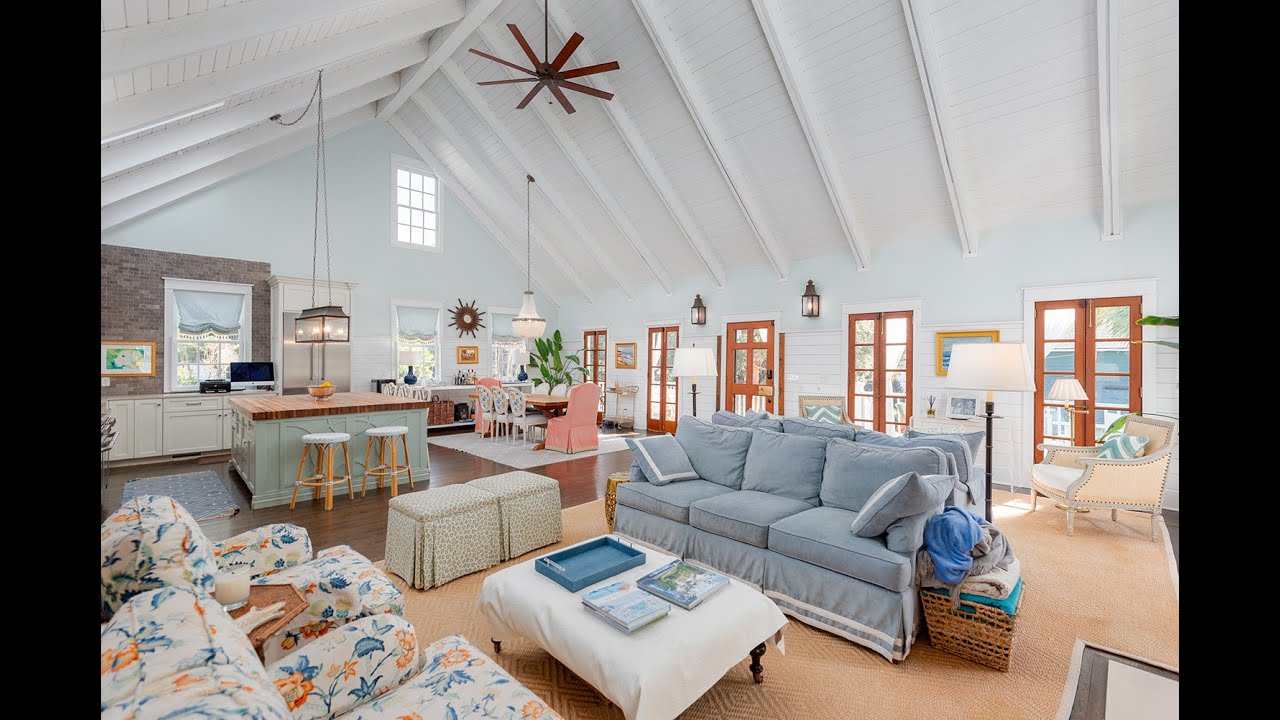 This historic yet newly renovated Old Village home has an ideal location–steps from the water, Pitt Street Pharmacy and shops, and close to both downtown Charleston and the beaches. Enjoy the harbor breezes from the large porch overlooking the private pool, garden and renovated pool house. Inside, the floor plan is light-filled and open with soaring vaulted ceilings, shiplap walls and white oak floors in the open living spaces which include the living room, dining area and kitchen. The large living room is anchored by a fireplace and transitions into the eat-in kitchen which features a large center island with 4” thick walnut butcher block counters, custom copper light fixtures, high-end stainless appliances, limestone counters, skylights and a defined dining space. Multiple sets of French doors open to the front porch, connecting indoor and outdoor living spaces. The peaceful master bedroom suite is located on the second floor and features a sunlit bedroom and an elegantly appointed en suite bath with a dual sink vanity, Travertine floors, tiled shower and french doors opening to a private porch. There are four additional bedrooms (including a secondary master suite) on the lower floor. The home is set back from the street so there is a large grassy front yard where you will find expert landscaping and lighting. A private pool, blue stone deck and pool house are found on the side of the property, made private by mature landscaping and trees. The owners have recently renovated the pool house, which features a large living space with a fireplace and built-in bookshelves and an updated kitchen with farmhouse sink and butcher block counters. Since the home is elevated, there is also a covered space on the first floor which is being used as a game area. Off-street parking, a treehouse and 2 new HVAC units are other features to note.