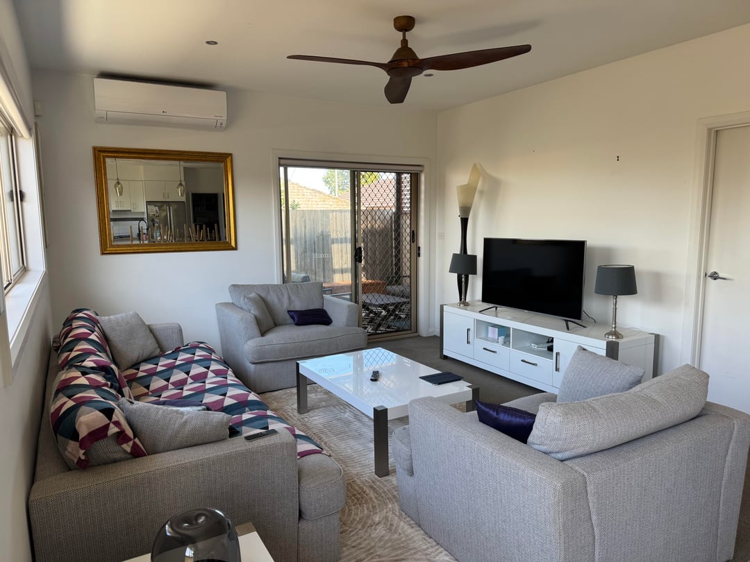 The bedroom lamps gotta go. They’re grey, and have almost no style, just bland. The floor lamp is kinda cool though. Can you use the coffee table and TV console table somewhere else? They’re a lot of why it looks so cold and bland in there. I think the grey couch is fine, it’s light enough to be a neutral, especially if you bring in some color by way of throws and accent pillows.