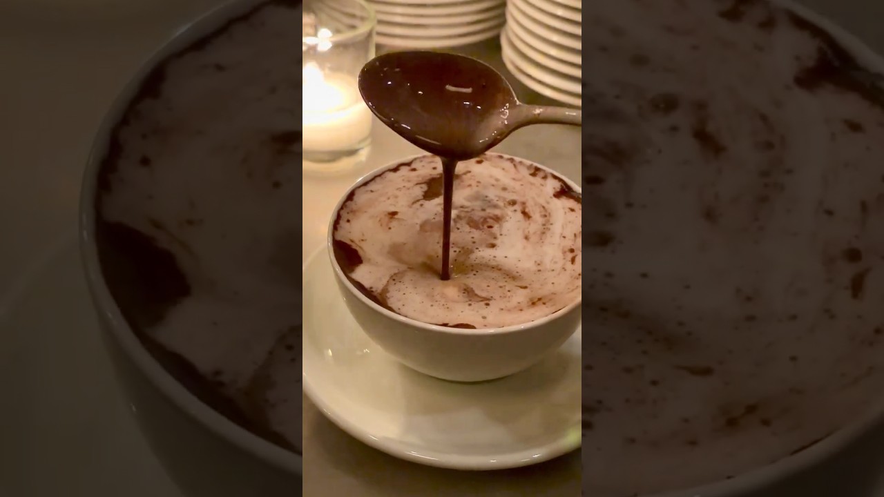 (Hot chocolate, calming, ASMR, stress relief, warm, dreamy, comfort food, winter, foodie, food, ambient sounds, review, cafe, chocolate, viral, gourmet, sweets, desserts, French Cafe, New York, NYC)