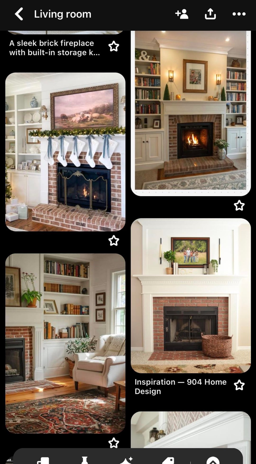 Gate is there currently because we have a baby. I gravitate towards traditional style and all of the fireplaces I've saved on Pinterest have a white mantel (2nd pic for context). Will i regret painting this wood? Should i stain it a bit darker? Regrout the brick? Would eventually love built-ins and ripping up the carpet (there's definitely wood floors underneath but unsure of condition) but that's not in the budget currently. Would love some ideas/advice!
