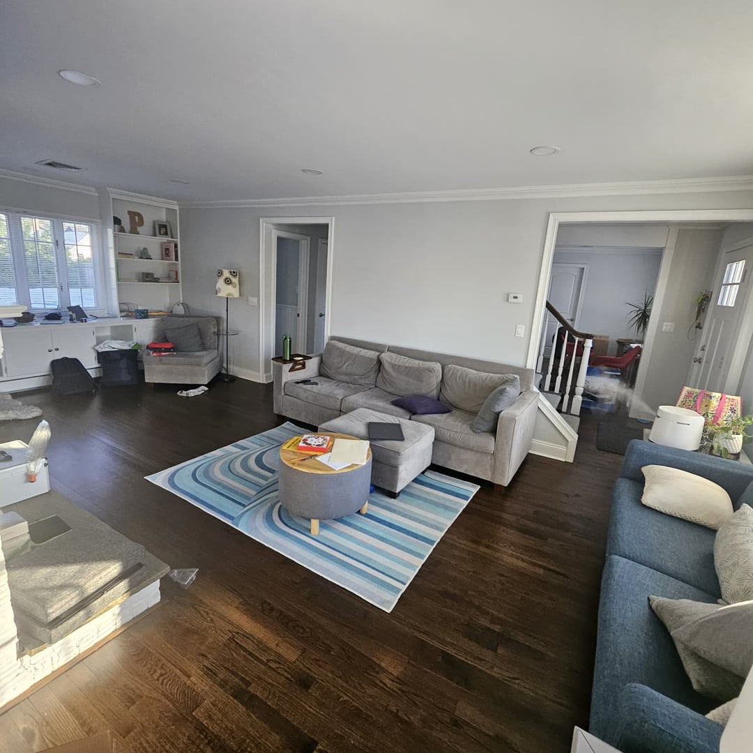 Hey everyone! I’m struggling to figure out a rug layout for my living room and could really use some creative eyes. I've attached photos of the space, and a floor plan with dimensions.