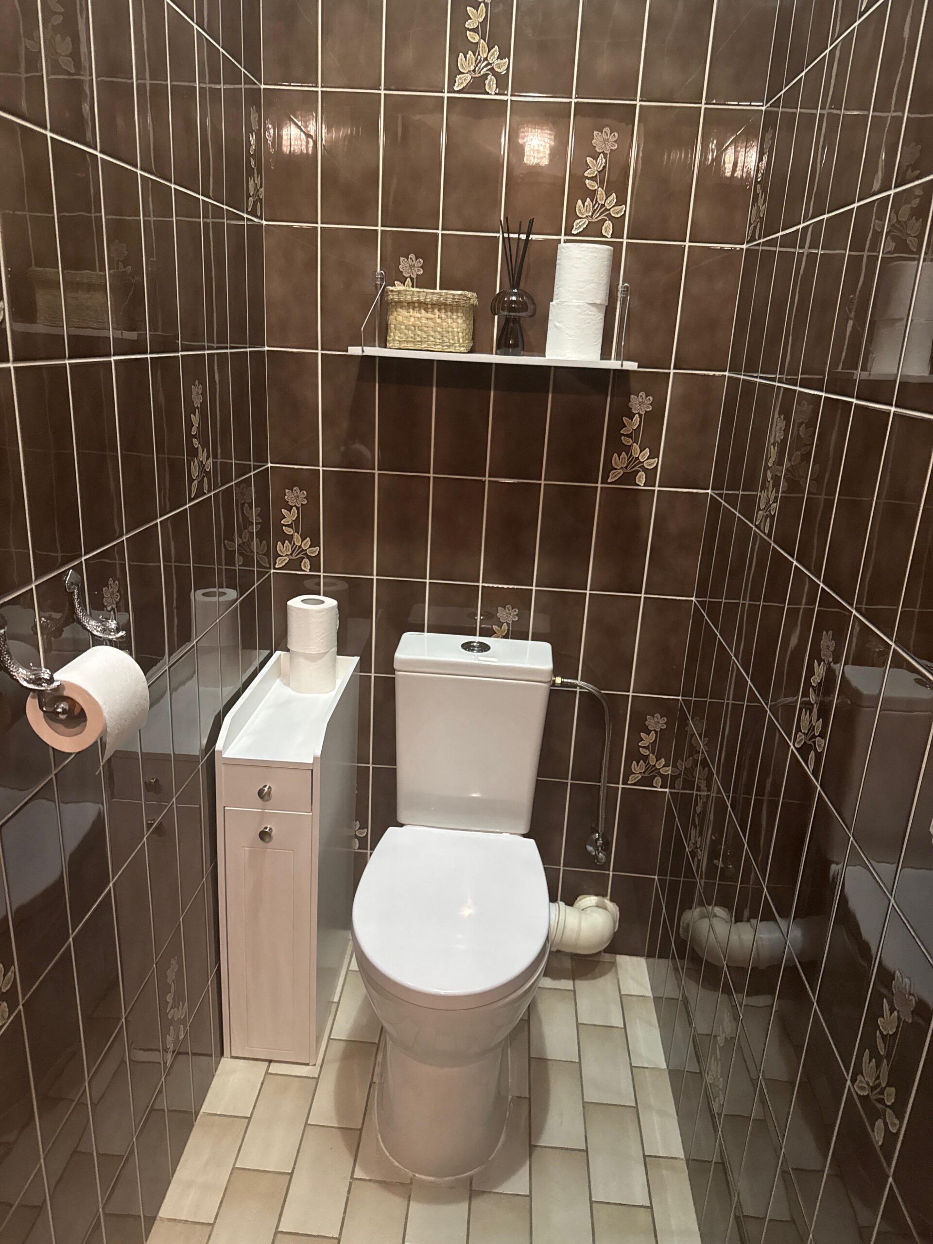 I’m curious, what sort of thing were you thinking? You can’t out anything on the wall because of the tiles. You’ve already got the shelf…what more could it possibly need? It’s a toilet!